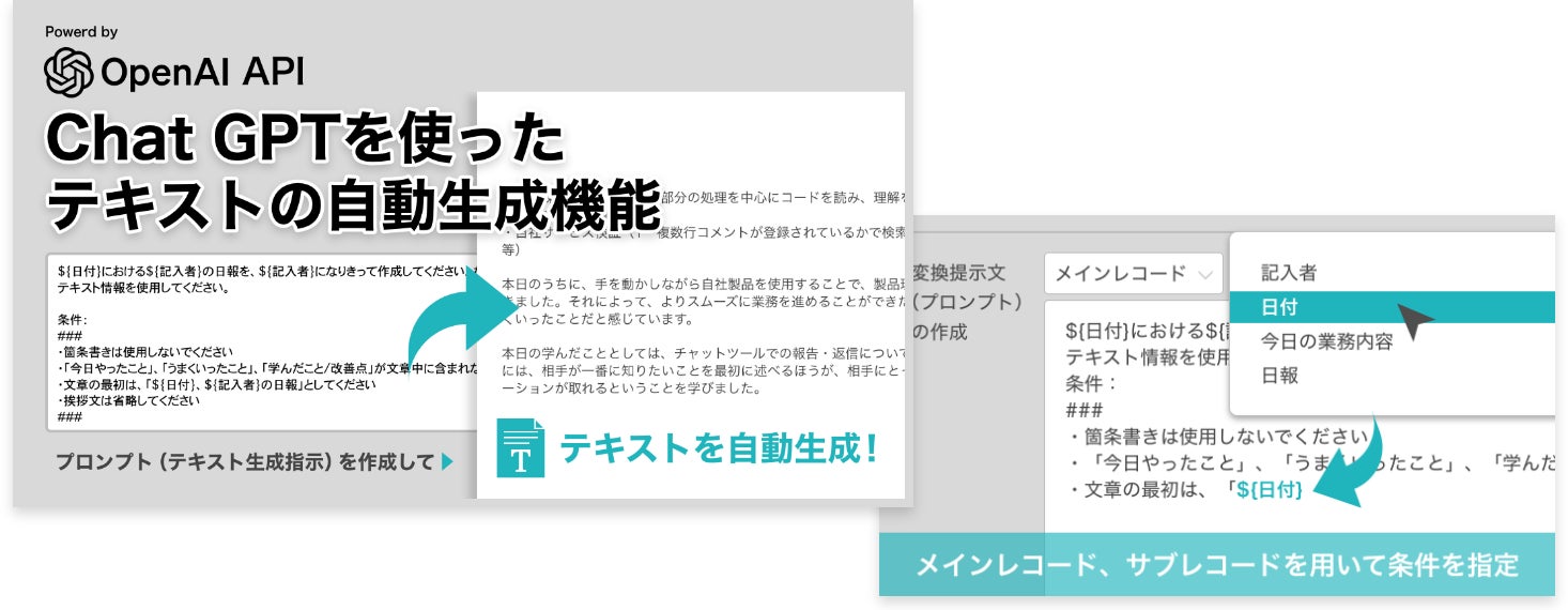 今回リリースした「テキストの自動生成機能」は、話題の人工知能技術であるChatGPTを活用しています。