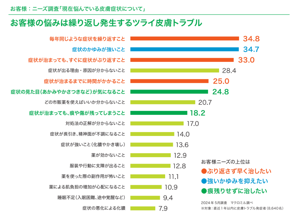 直近1年以内の皮膚トラブル発症者を対象に実施したニーズ調査によると、