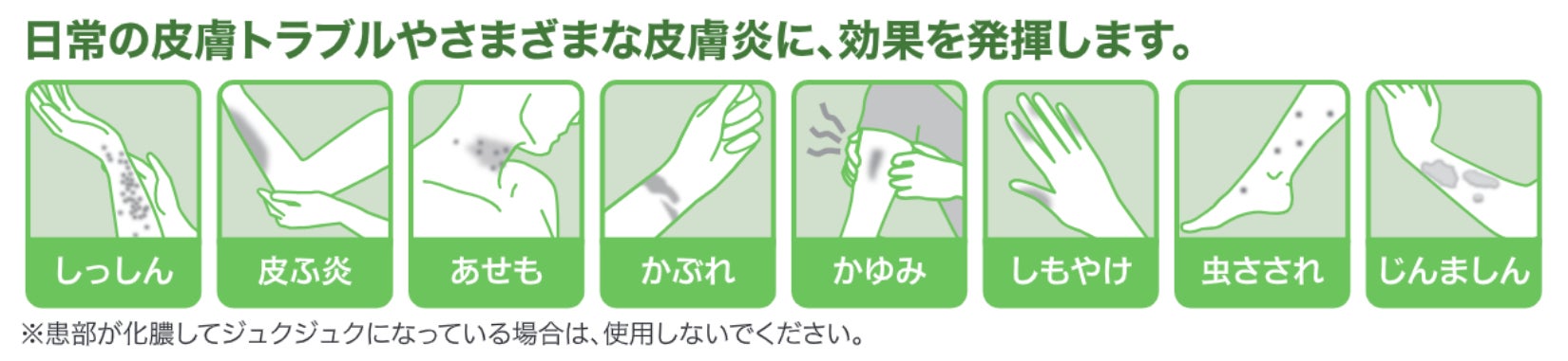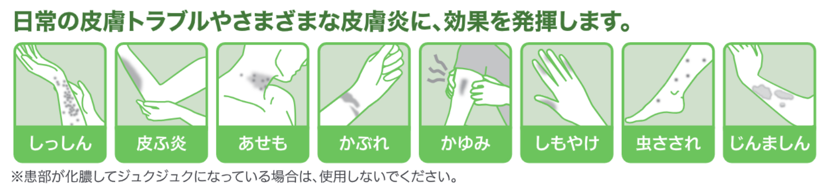 日常の皮膚トラブルや様々な皮膚炎などの症状に効果を発揮します。