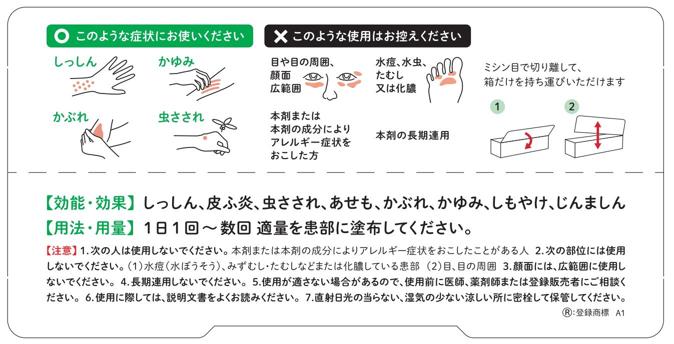 【効果・効能】しっしん、皮ふ炎、虫さされ、あせも、かぶれ、かゆみ、しもやけ、じんましん