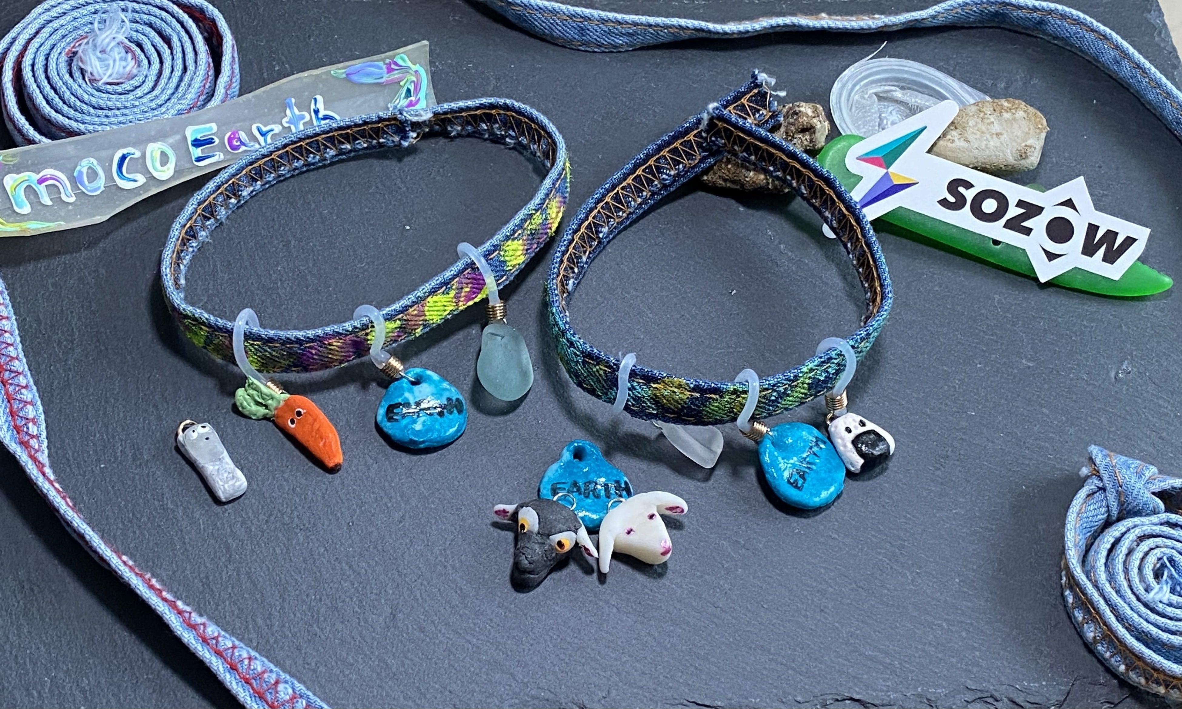 ビニールの海の中からすくいあげた地球のチャームやシーグラス等を使いながら、捨てられるはずだったデニムをバングルに変えていきます。最後には、持って帰ることのできる自分だけのアクセサリーが完成!楽しいアクセサリーづくりを通して、人間によるゴミで汚染され、それによって苦しむ海の生き物たちの問題を知ることができるワークショップです。