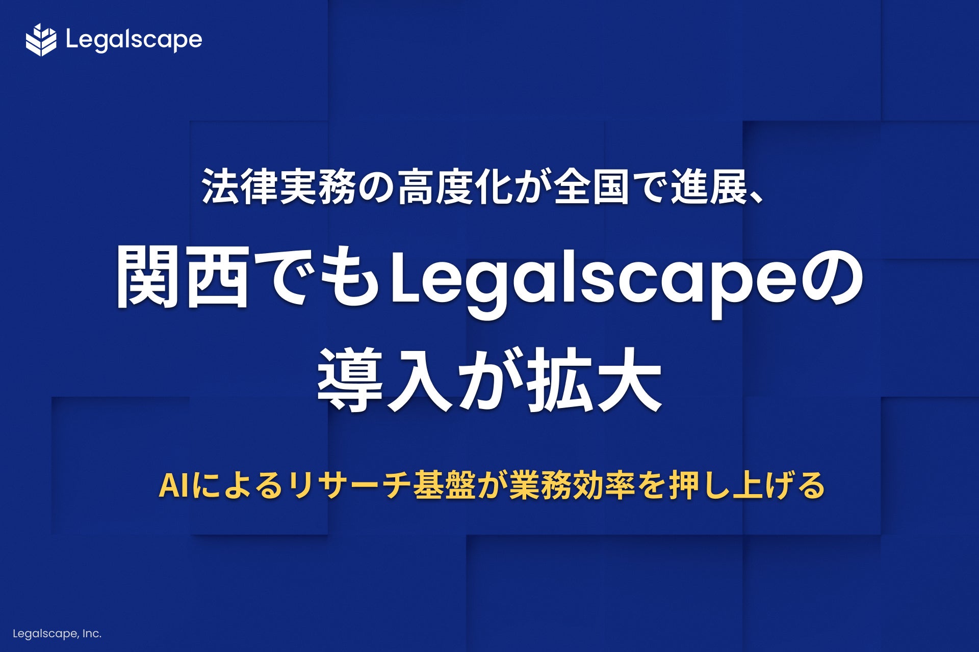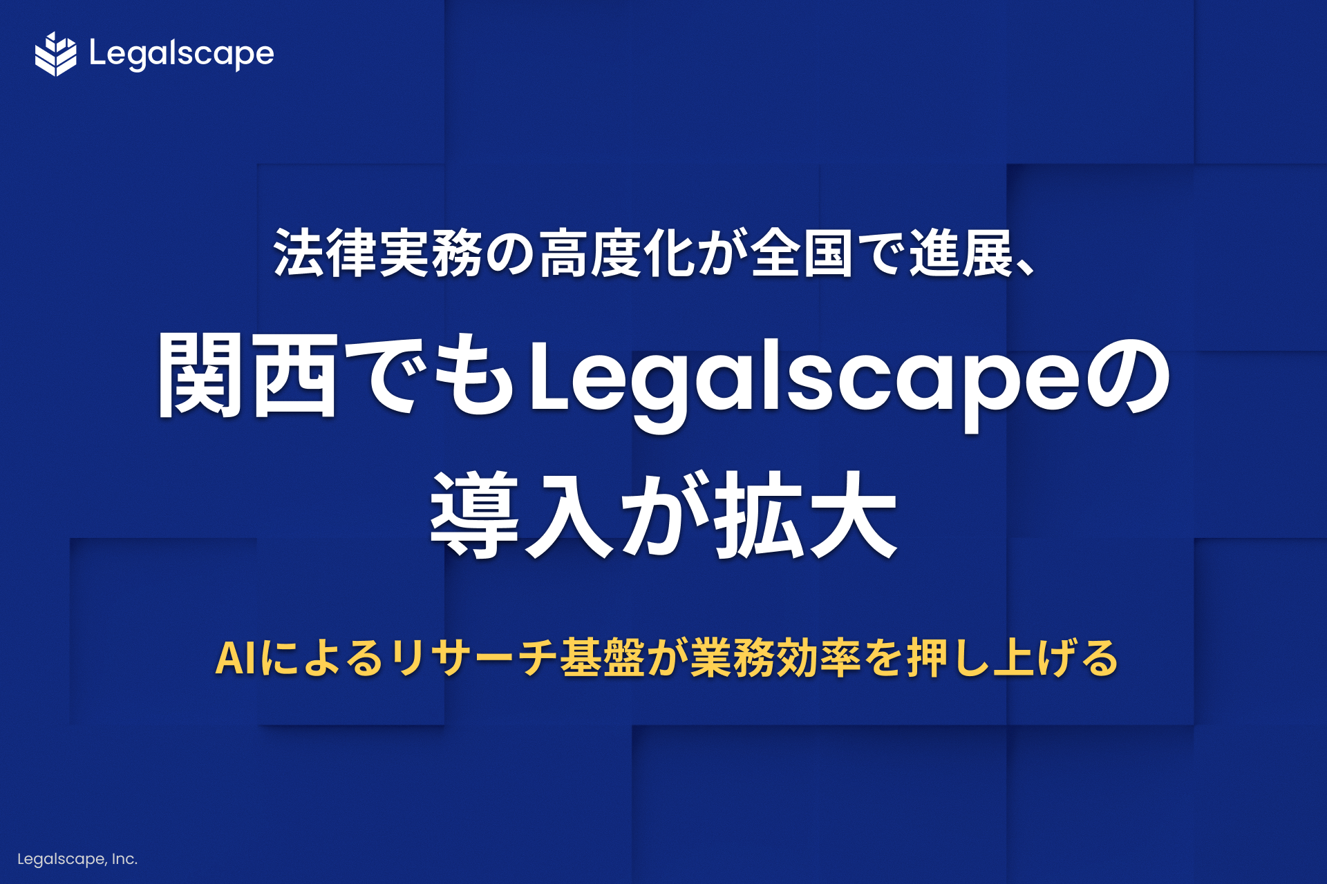 株式会社Legalscape(本社:東京都文京区、代表取締役・最高経営責任者 八木田 樹、以下「リーガルスケープ」)が提供するリーガルリサーチプラットフォーム「Legalscape(リーガルスケープ)」は、全国の大手法律事務所での採用が進む中、関西地域においても複数の大手法律事務所でも導入が進展していることをお知らせします。