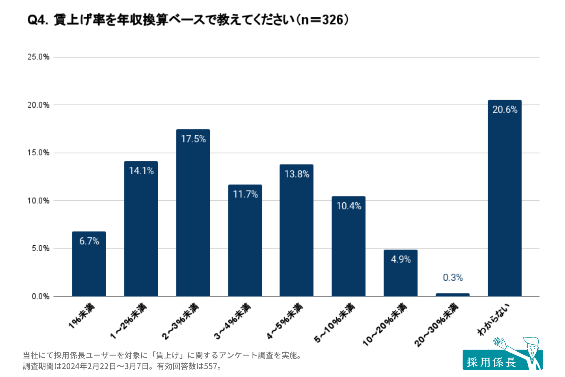 株式会社ネットオンでは、採用業務クラウド『採用係長』の登録ユーザーである中小企業の採用担当者を対象に、2024年度の賃上げ予定に関するアンケート調査を実施しました。