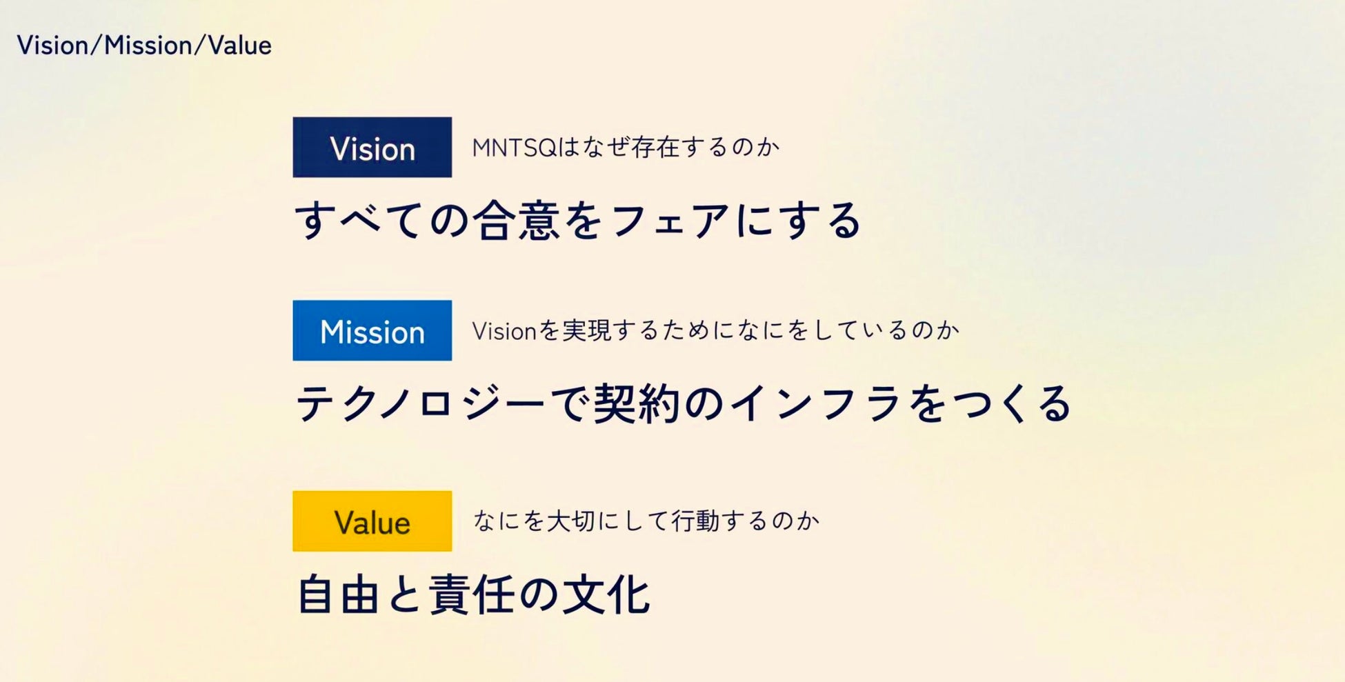 MNTSQは「すべての合意をフェアにする」というビジョンのもと、これまでの契約業務のあり方を、テクノロジーの力で根本から見直し、変えていこうとしています。この挑戦に共感する仲間が次々と集まり、現在では社員数が100名近くにまで成長しました。