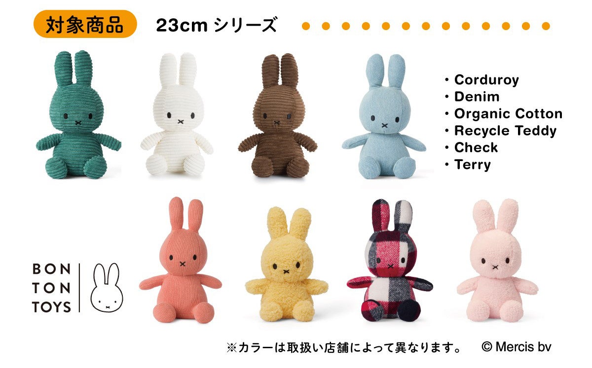 対象商品:BON TON TOYS | Miffy Corduroy 23cm、Miffy Denim 23cm、Miffy Organic Cotton 23cm、Miffy Recycle Teddy 23cm、Miffy Check 23cm、Miffy Terry 23cm