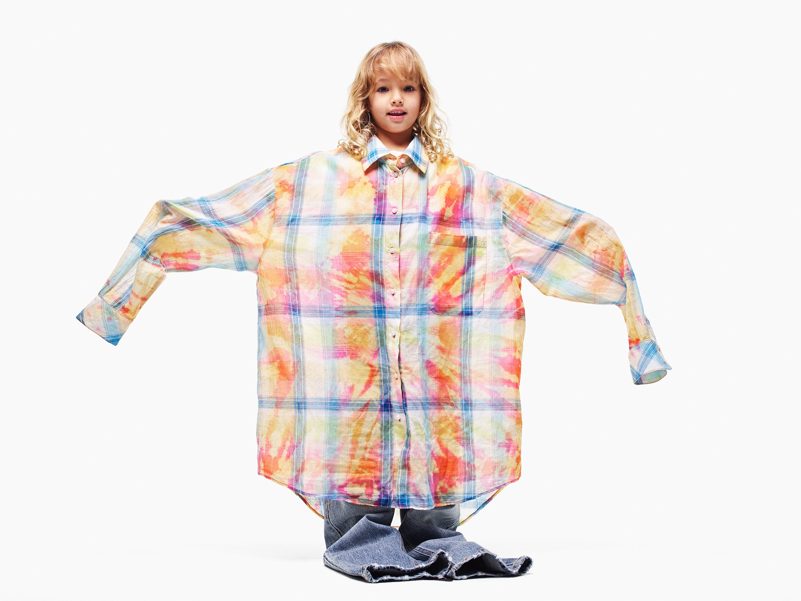 23年春夏コレクションのトップスには、パッチワークプリントやタイダイウォッシュをあしらったオーバーサイズのチェック柄シャツもラインナップされます。