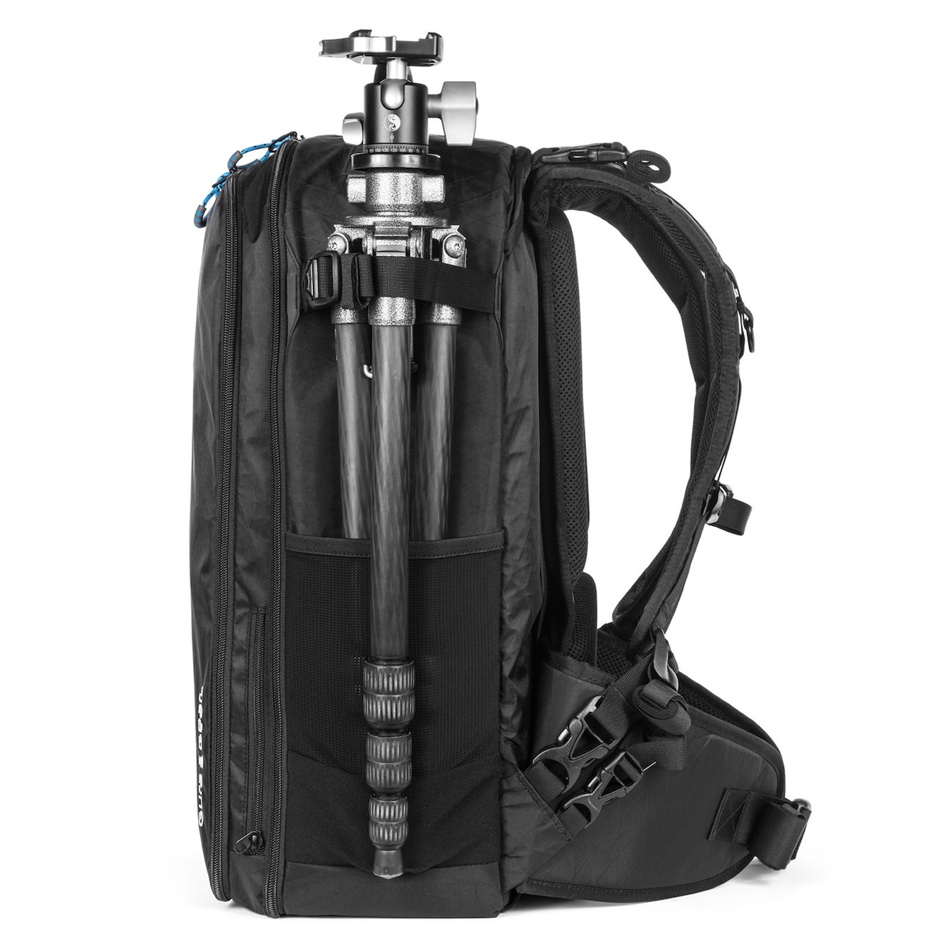 バッグの両サイドにもポケットが設けられ、三脚などを安定して持ち運びできるようにストラップを装備。ウォーターボトルや丸めたジャケットなども収まります。