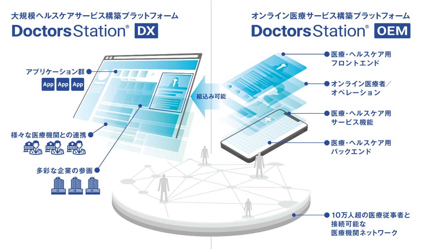 Doctors Station® DXは、更に大規模なプラットフォーム型の医療・ヘルスケアビジネスを実現する大規模オンライン医療プラットフォームです。