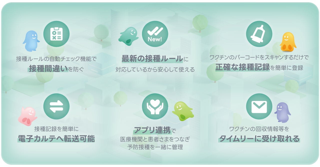 これまで、2022年6月にβ版医療機関アプリをリリースし、その後川崎市川崎区や北海道羊蹄山麓など特定のエリアにおける医療機関にて先行導入を実施してまいりました。川崎区においては、小児のワクチン接種を行う約30の内科・小児科に医療機関アプリが設置されており、約50,000件の接種記録が登録され、100件を超える接種間違いを未然に防止することができました。その後も各医療機関へのヒアリングを通じてワークフローへの適合や安全性の向上を図る改良を重ね、この度、全国の医療機関でご利用いただけるサービスとしてリリースいたしました。