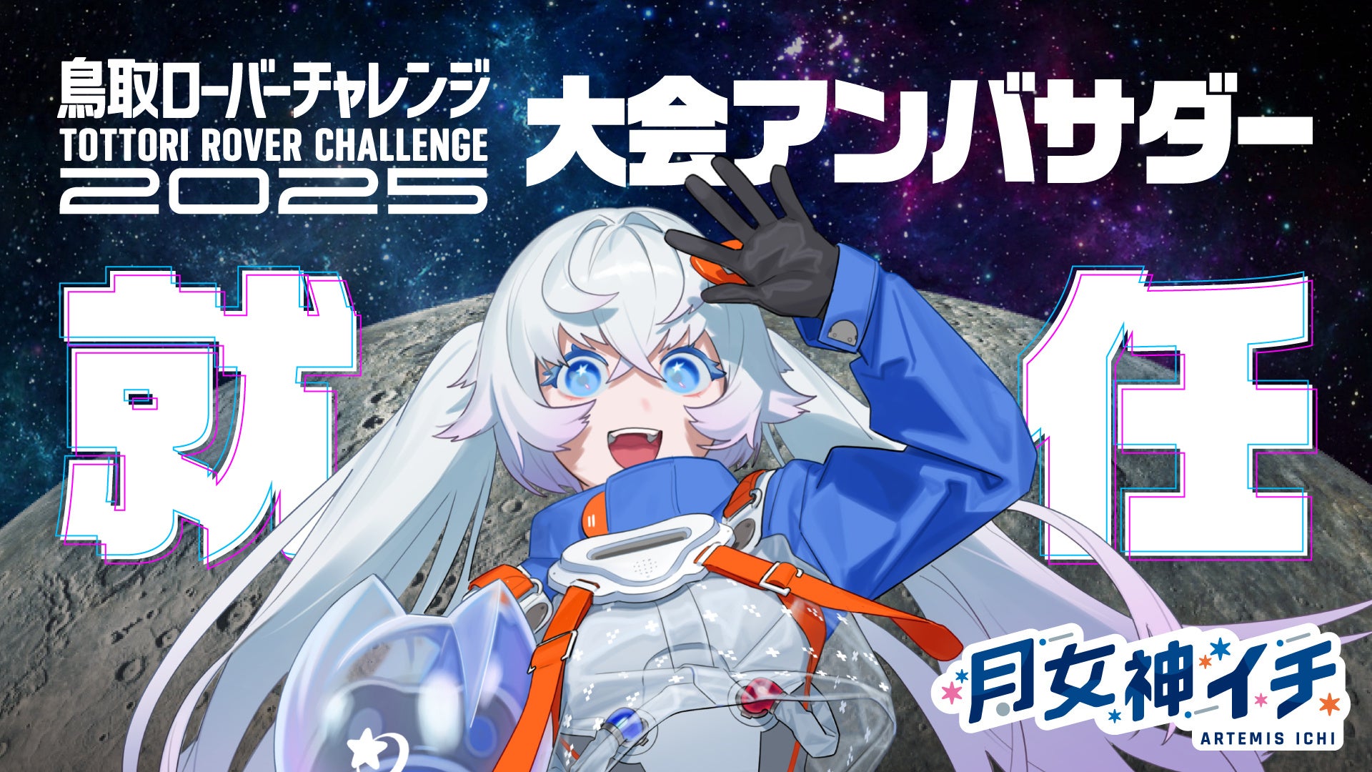 「300年後の月で生まれた新人宇宙飛行士VTuber」として現代の日本にやってきた月女神イチは、2024年9月のデビュー以来、YouTubeでのライブ配信やX、さらに宇宙エンターテイメント施設『Space Travelium TeNQ』での活動を通じて宇宙開発や宇宙ビジネスに関する情報を発信し、ファンの皆さまと交流を深めてきました。このたび、日本国内における月面開発への取り組みをさらに盛り上げるため、月にゆかりのあるVTuberとして「鳥取ローバーチャレンジ2025」の大会アンバサダーに就任することとなりました。