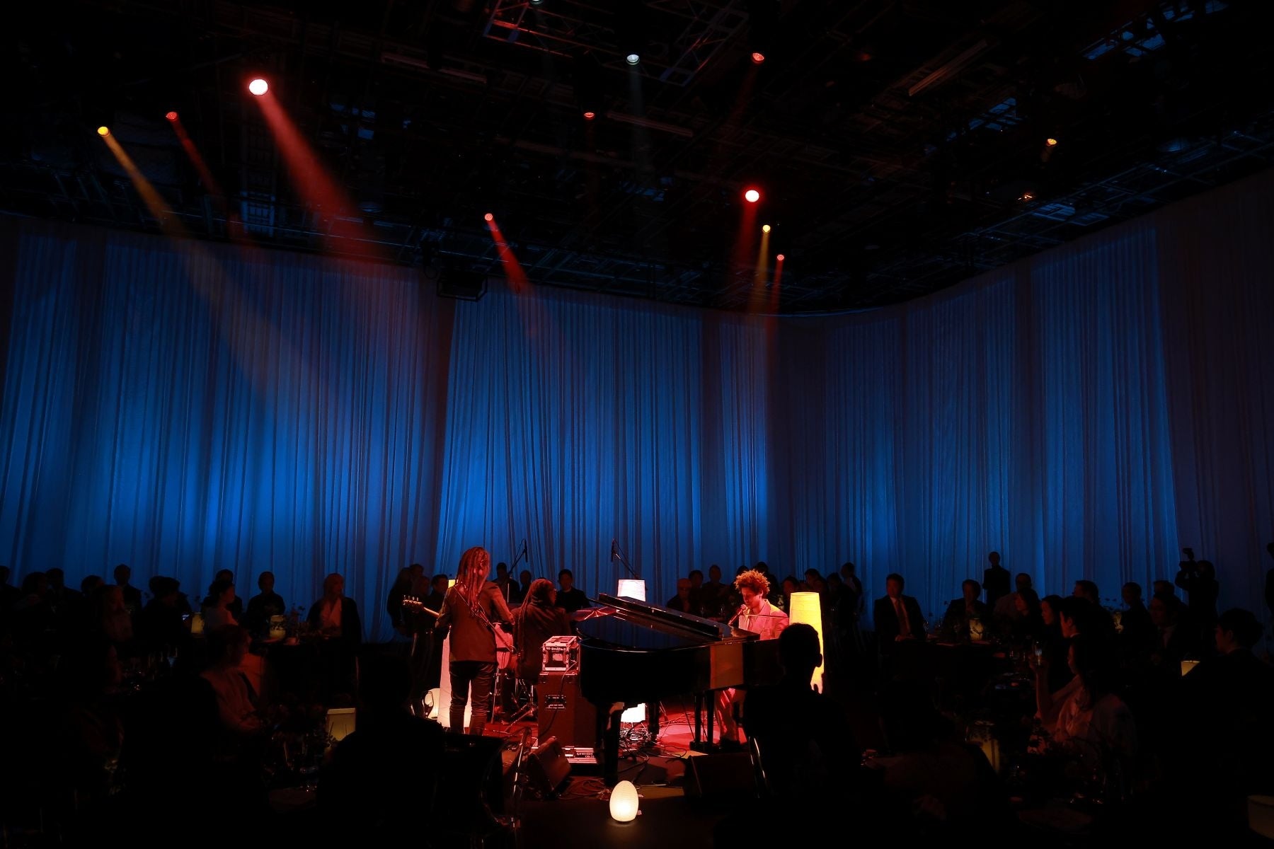 この夜のメインディッシュは、東京のレストランétéでファインダイニングの新境地を切り開いてきたシェフ庄司夏子氏による、ローズウッドの日本初進出となる最新ホテル「ローズウッド宮古島」から着想を得た特別コースでした。さらに、ジャズ界で高い評価を得るアーティストであり、ローズウッドの「カフェ・カーライル」専属ミュージシャンでもあるRuben James(ルーベン・ジェームズ)氏のパフォーマンスと、サーペンタインやサマセット・ハウスとのコラボレーションで知られる著名なデザインエージェンシーHATOが手がけた没入型ビジュアル・プロジェクションが相まって、五感を刺激する豊かな体験が繰り広げられました。