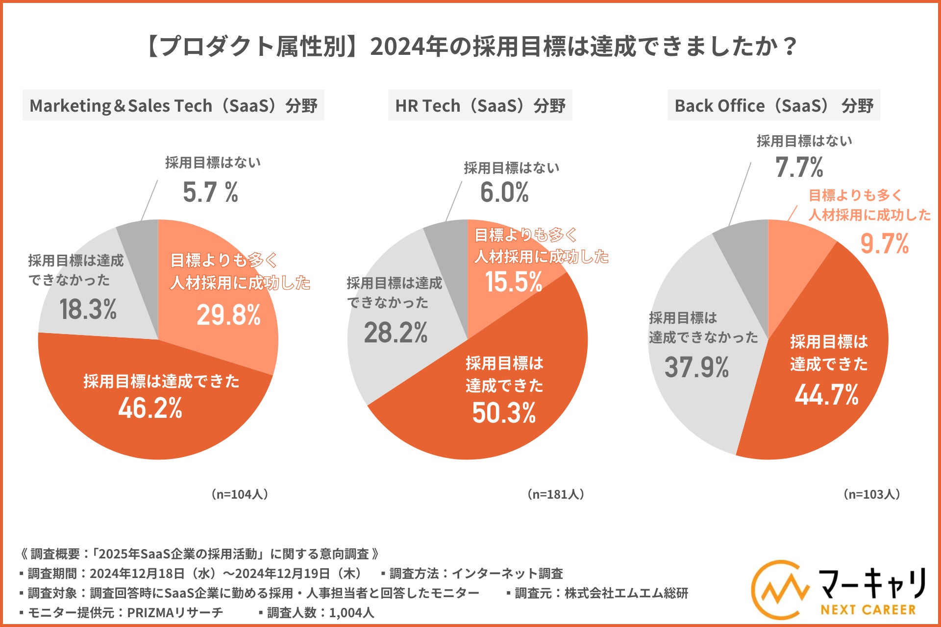 では、業務サポートのSaaS分野ごとに、企業の採用目標の達成状況を確認しましょう。