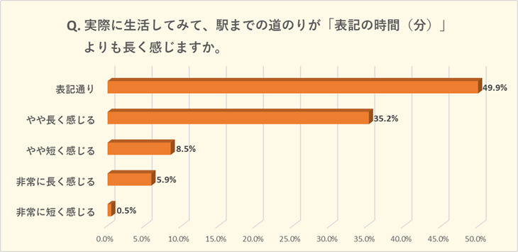 続いて、駅までの道のりに関する体感時間についてお伺いしました。