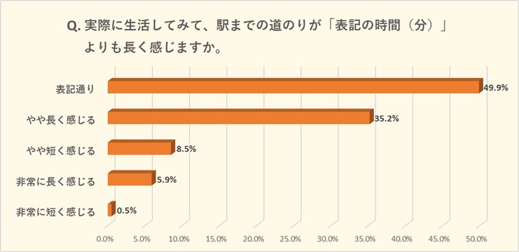 <Q2. 実際に生活してみて、駅までの道のりが「表記の時間(分)」よりも長く感じますか。>
