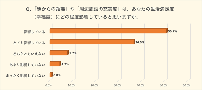 <Q7. 「駅からの距離」や「周辺施設の充実度」は、あなたの生活満足度(幸福度)にどの程度影響していると思いますか。>