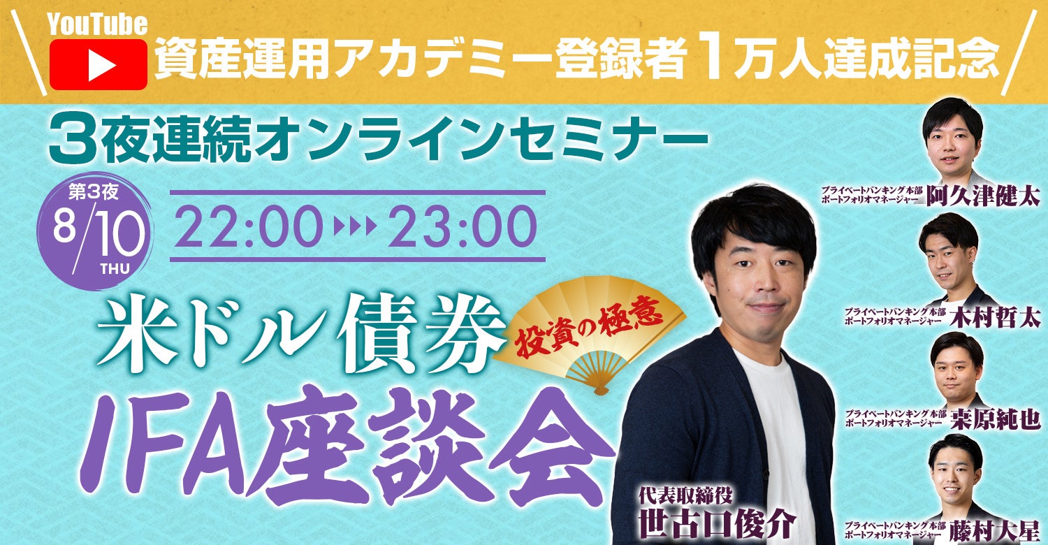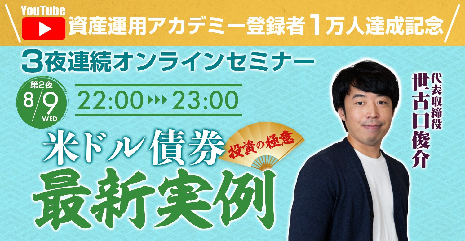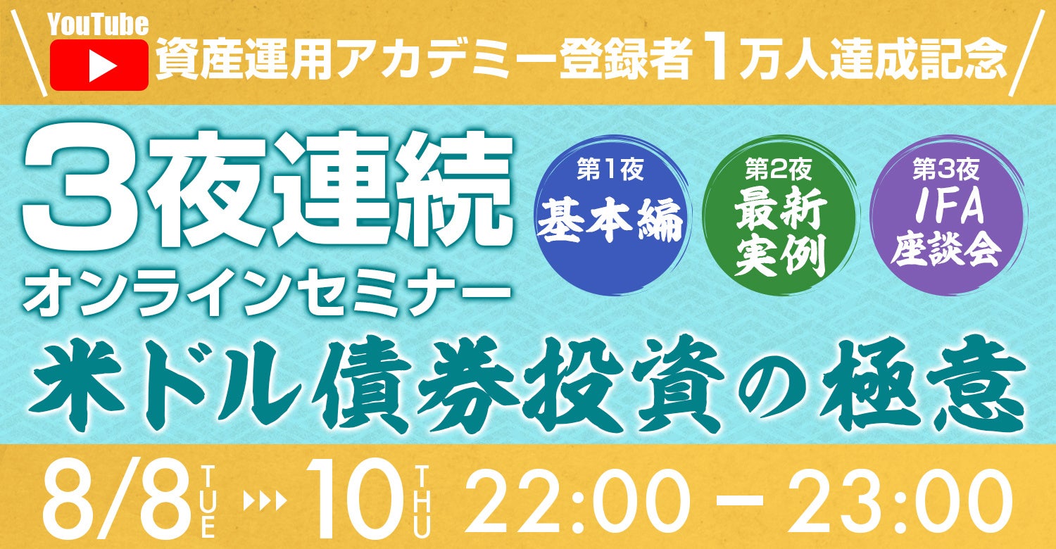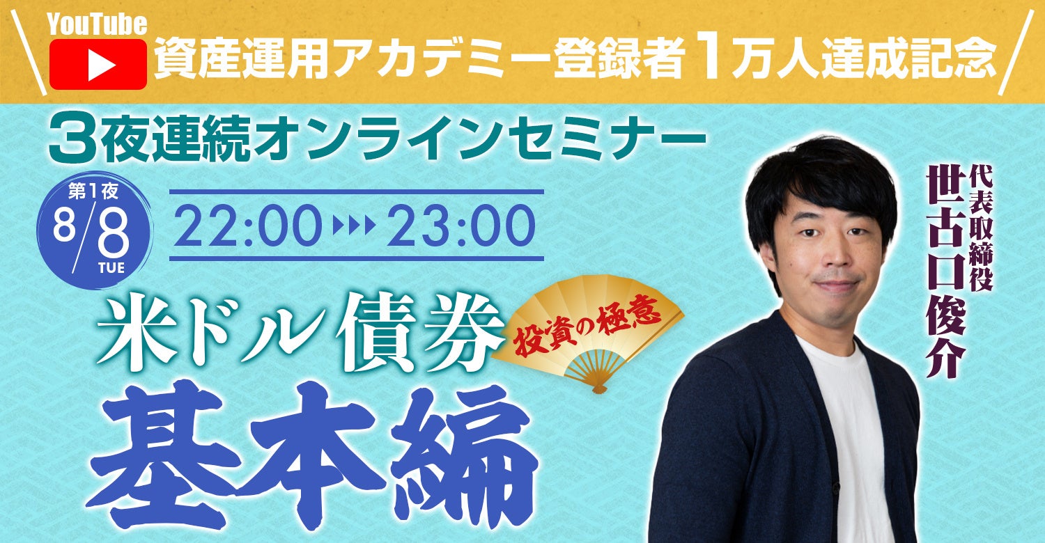 【YouTube登録者1万人達成記念3夜連続オンラインセミナー】8月8日〜8月10日開催「米ドル債券投資の極意」