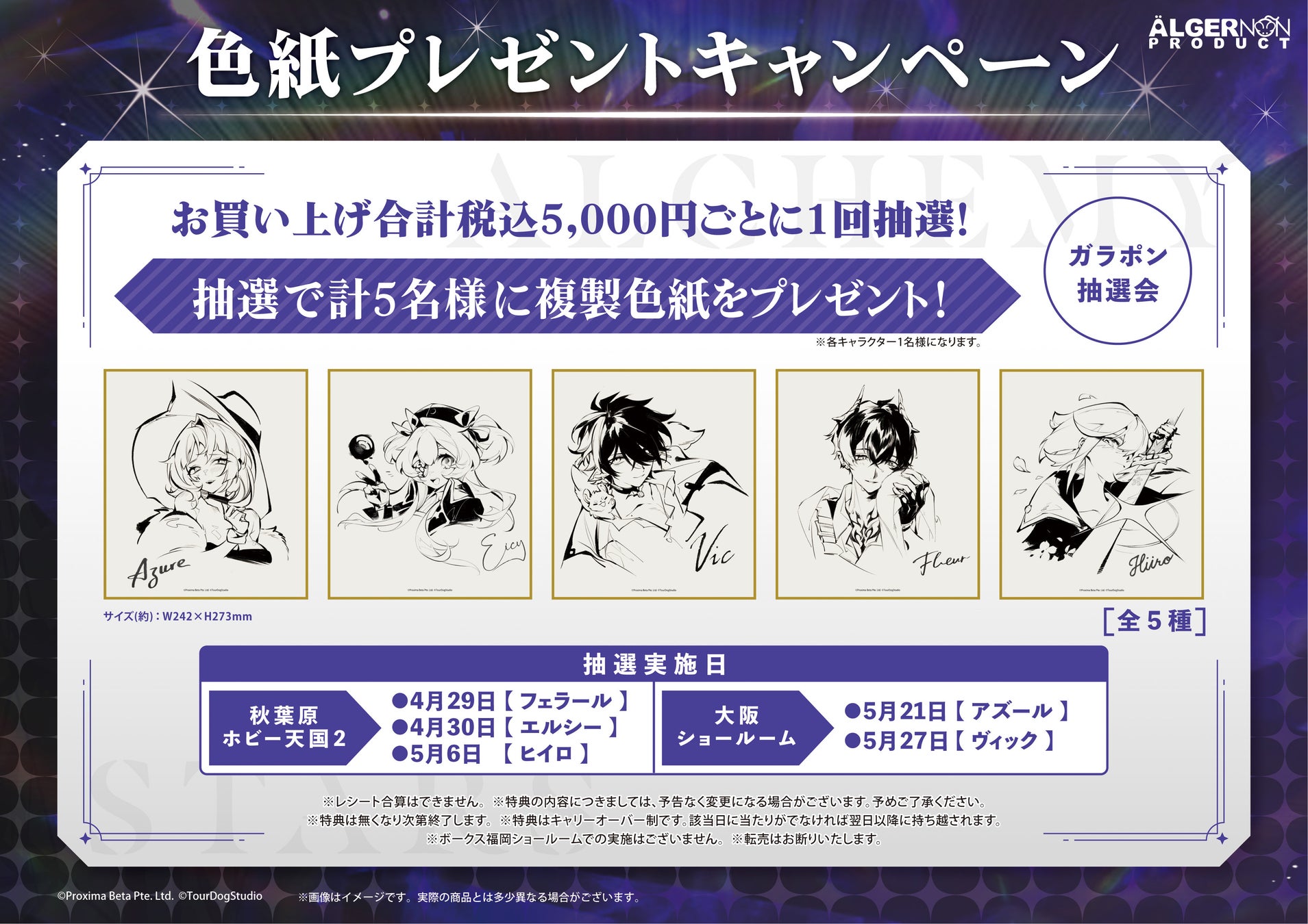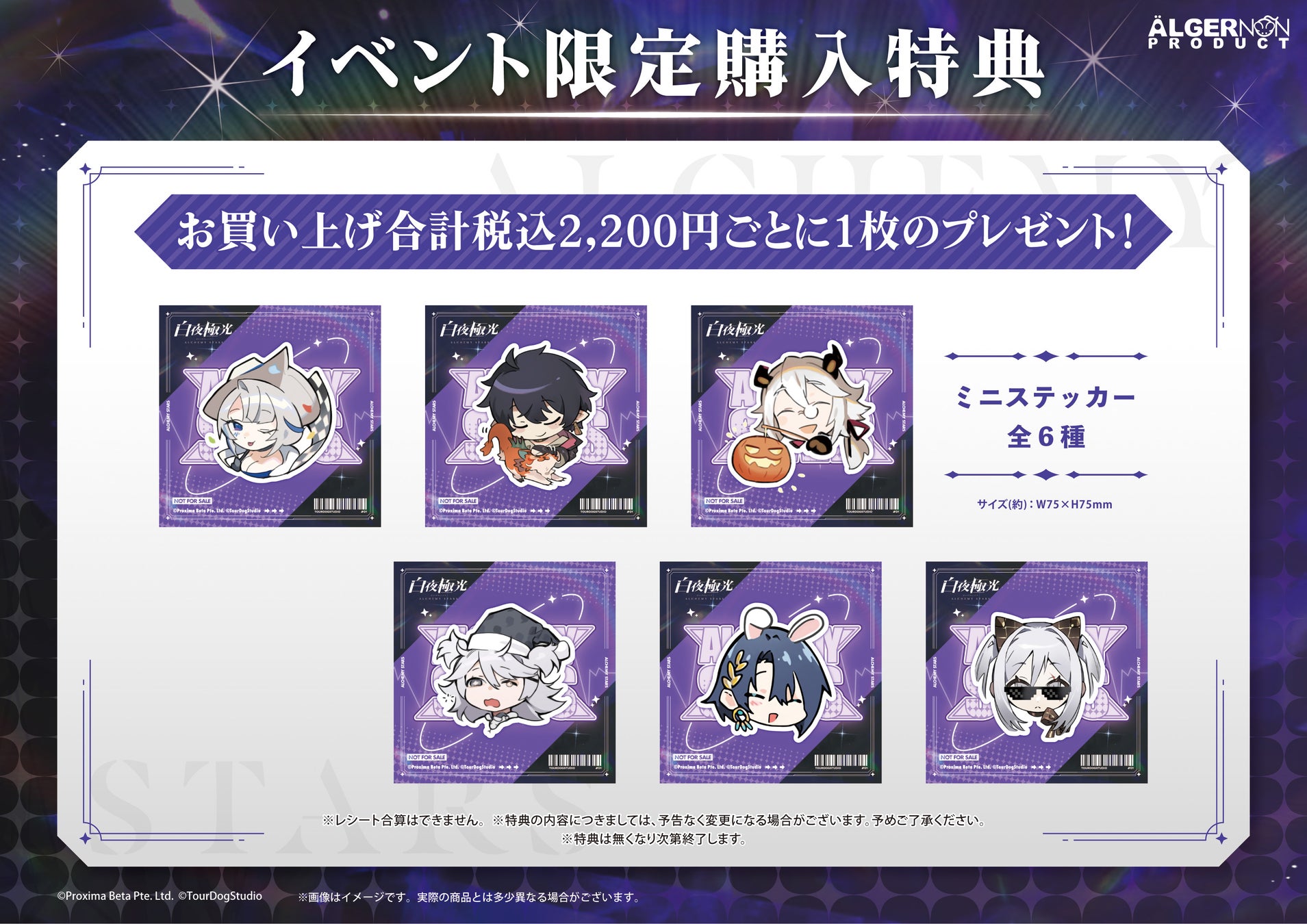 株式会社アルジャーノンプロダクト(本社:東京都台東区、代表:高山 聡士)は、ボークス3店舗(秋葉原ホビー天国2、大阪ショールーム、福岡ショールーム)にて『白夜極光 プレミアムストア』を2023年4月29日(土)より開催いたします。