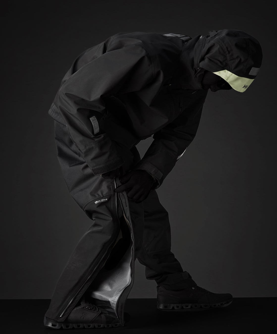 サイドにはシューズやブーツを履いたまま脱ぎ穿きしやすいように長めのファスナーを搭載しています。オーバーヒート時のベンチレーション機能やインナーポケットへのダイレクトアクセスも可能にした一品です。