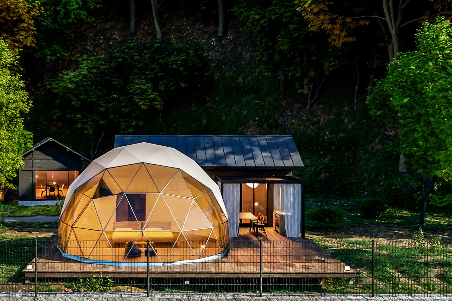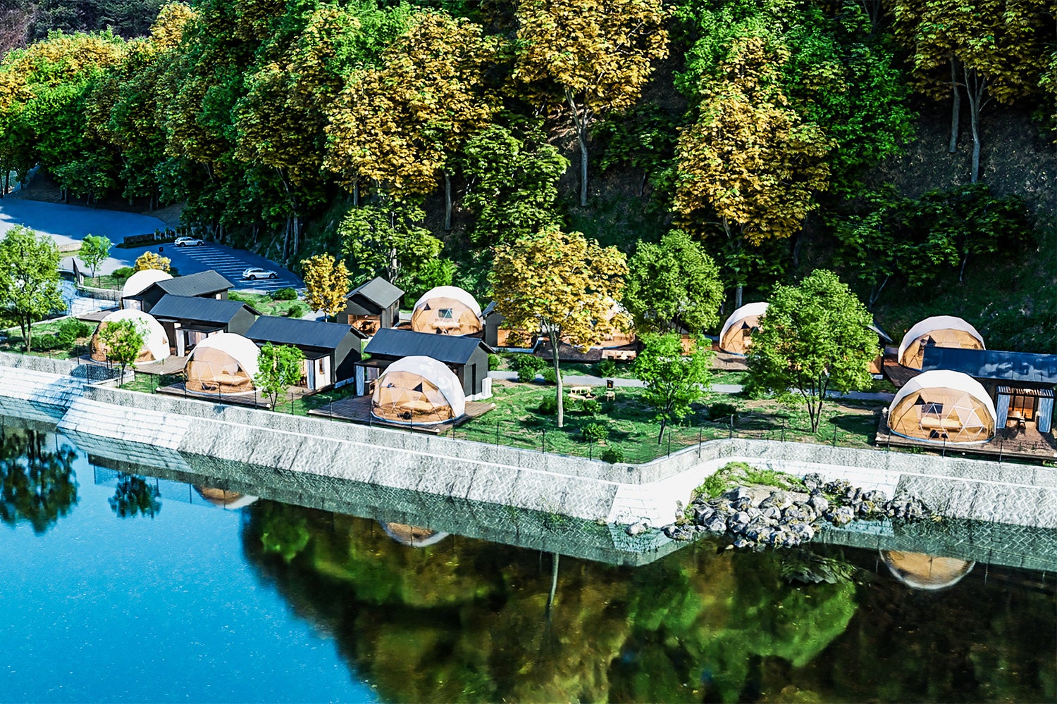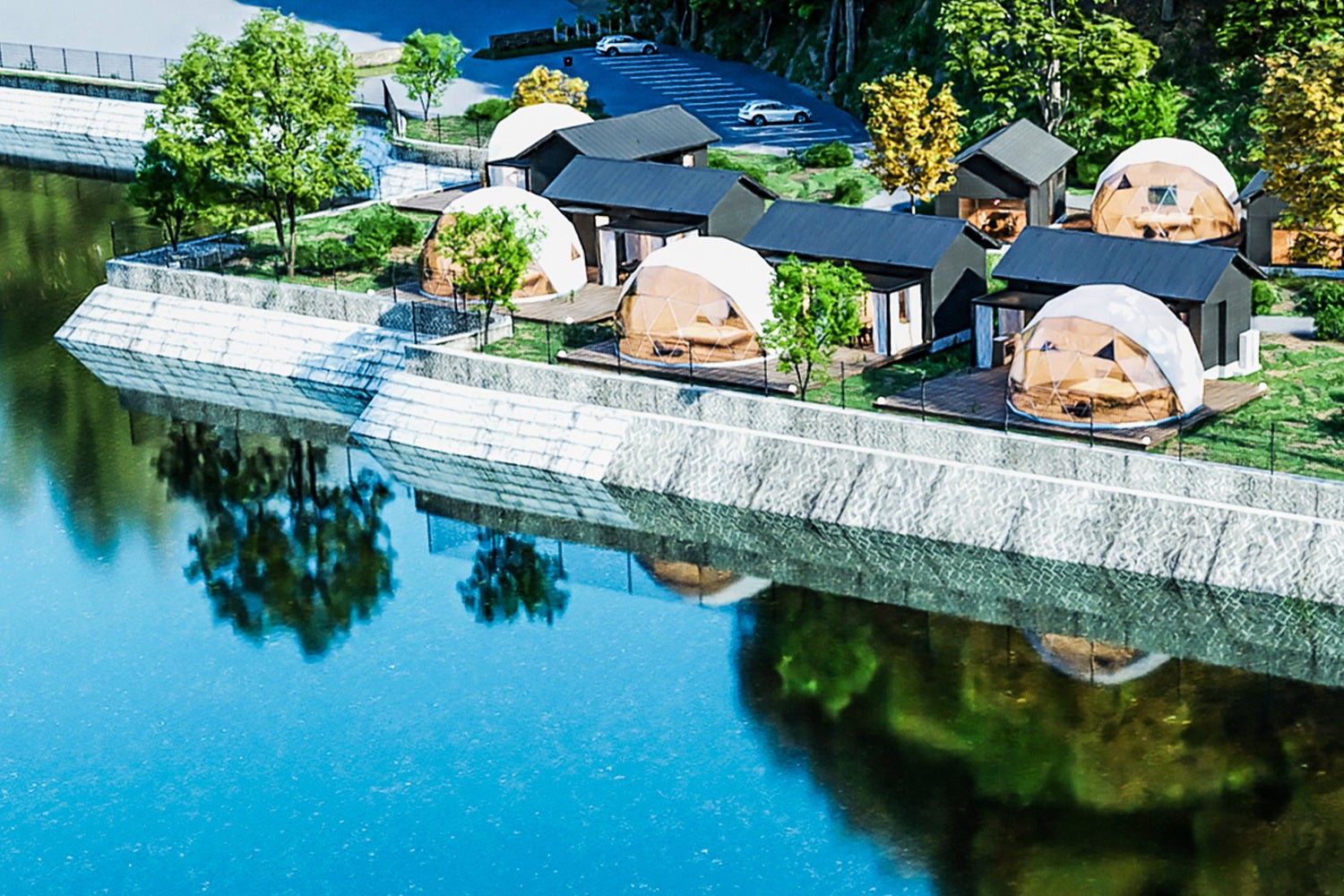 既存の4棟に加え、新たに5つの高規格グランピング施設のドーム型テントを増設し、よりバリエーションに富んだ総合グランピング施設としてリニューアルいたします。