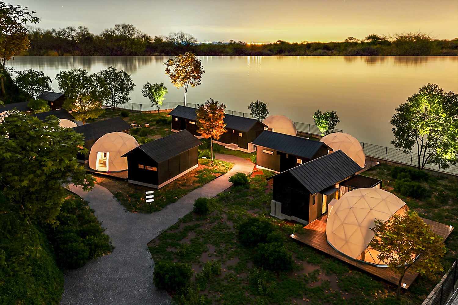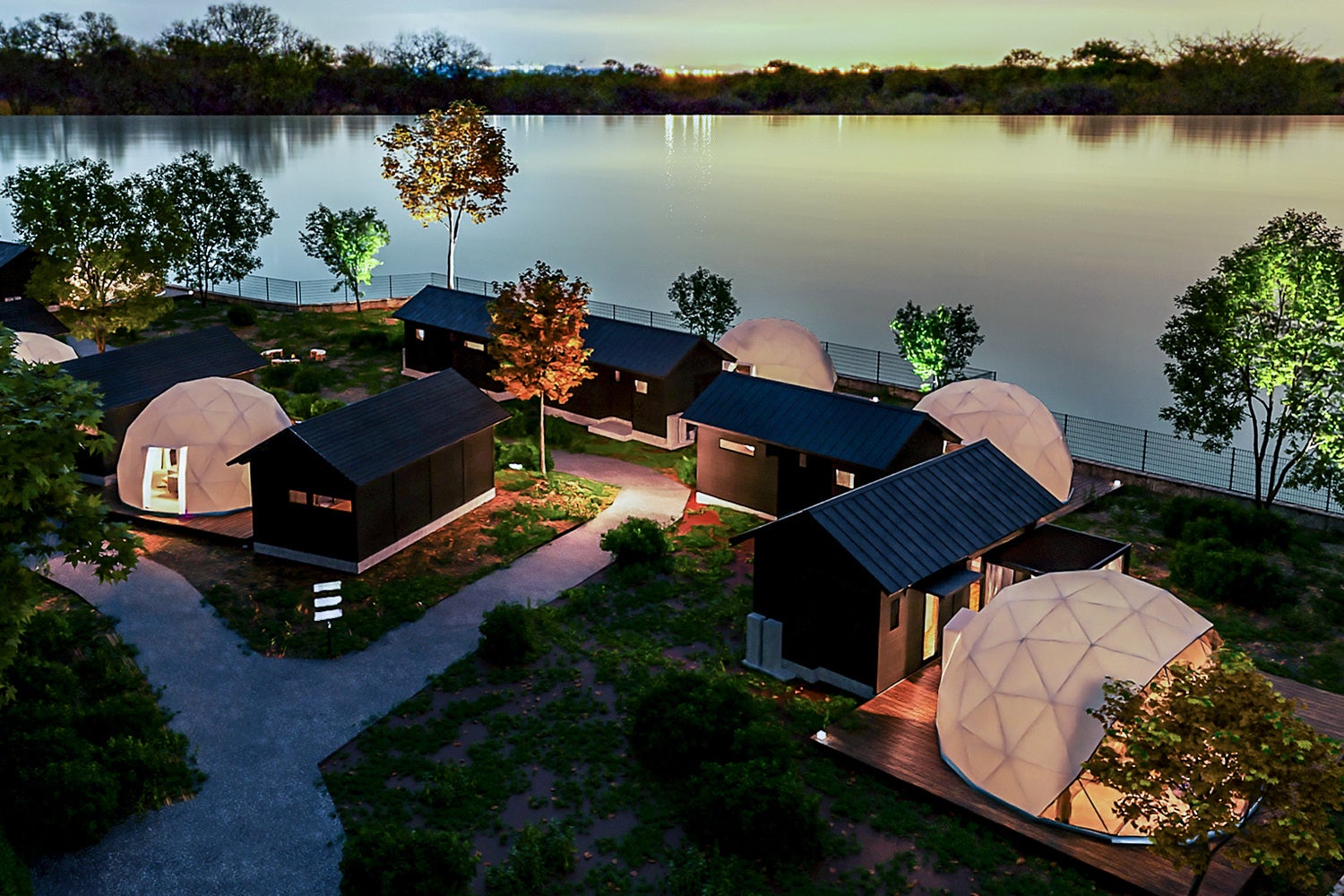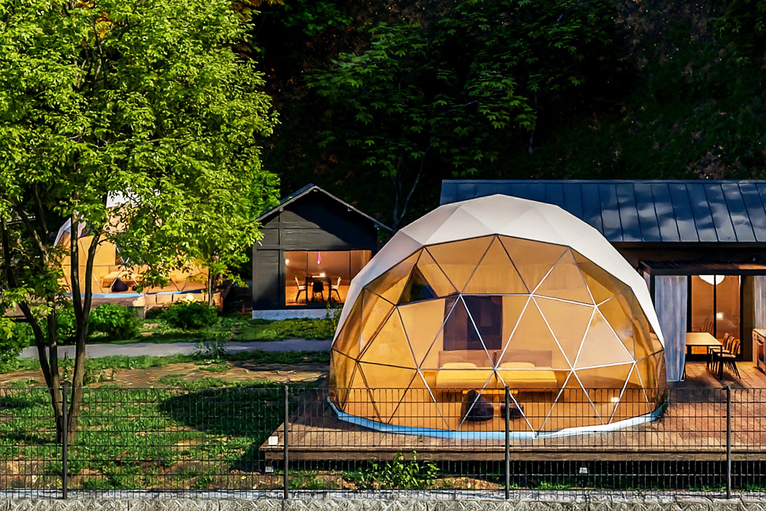 既存の4棟に加え、新たに5つの高規格グランピング施設のドーム型テントを増設し、よりバリエーションに富んだ総合グランピング施設としてリニューアルいたします。