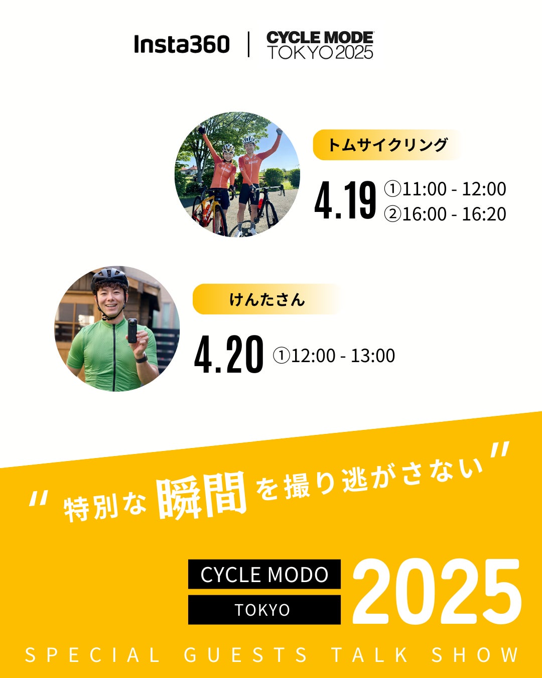 Insta360は、2025年4月19(土)〜20(日)の2日間、東京ビッグサイトで開催される「CYCLE MODE TOKYO 2025」に出展いたします。