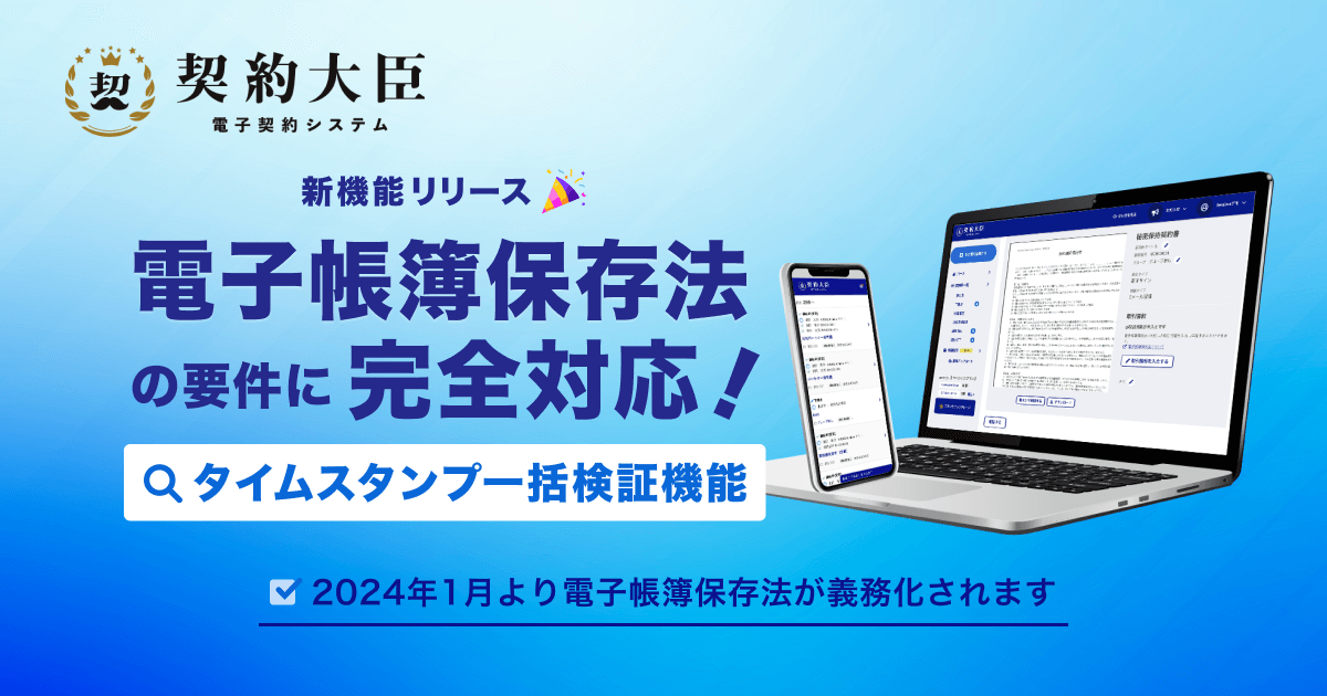 電子契約システム『契約大臣』が新機能「タイムスタンプ一括検証機能」をリリース!電子帳簿保存法の要件に完全対応しました