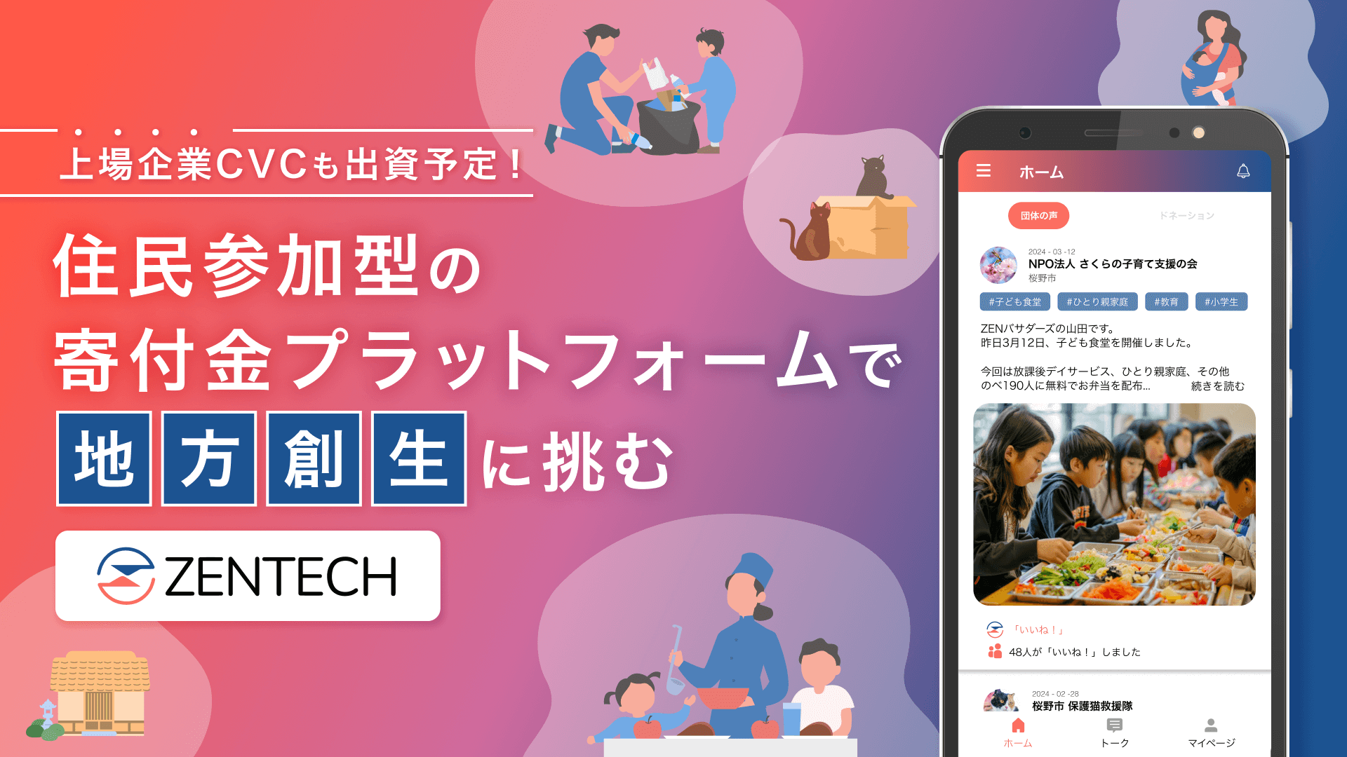 上場企業CVCも出資予定!住民参加型の寄付金プラットフォームで地方創生に挑む「ZENTECH」、イークラウドを通じた資金調達を5月23日に開始