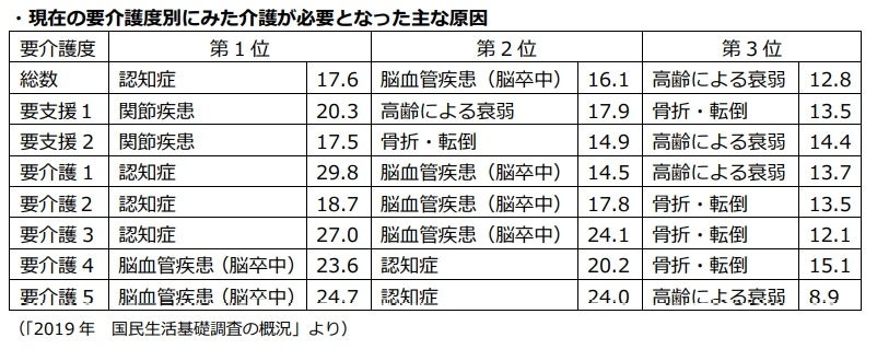 要介護者の介護が必要になった主な原因(全体)をみると、「認知症」に次いで「脳血管疾患」が第2位です。