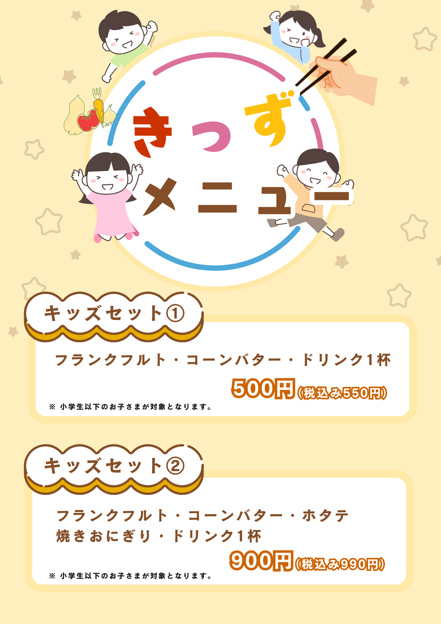 そんな想いから、「牡蠣小屋 かき太鼓」ではお子さまにも嬉しいキッズメニューをご用意しました。