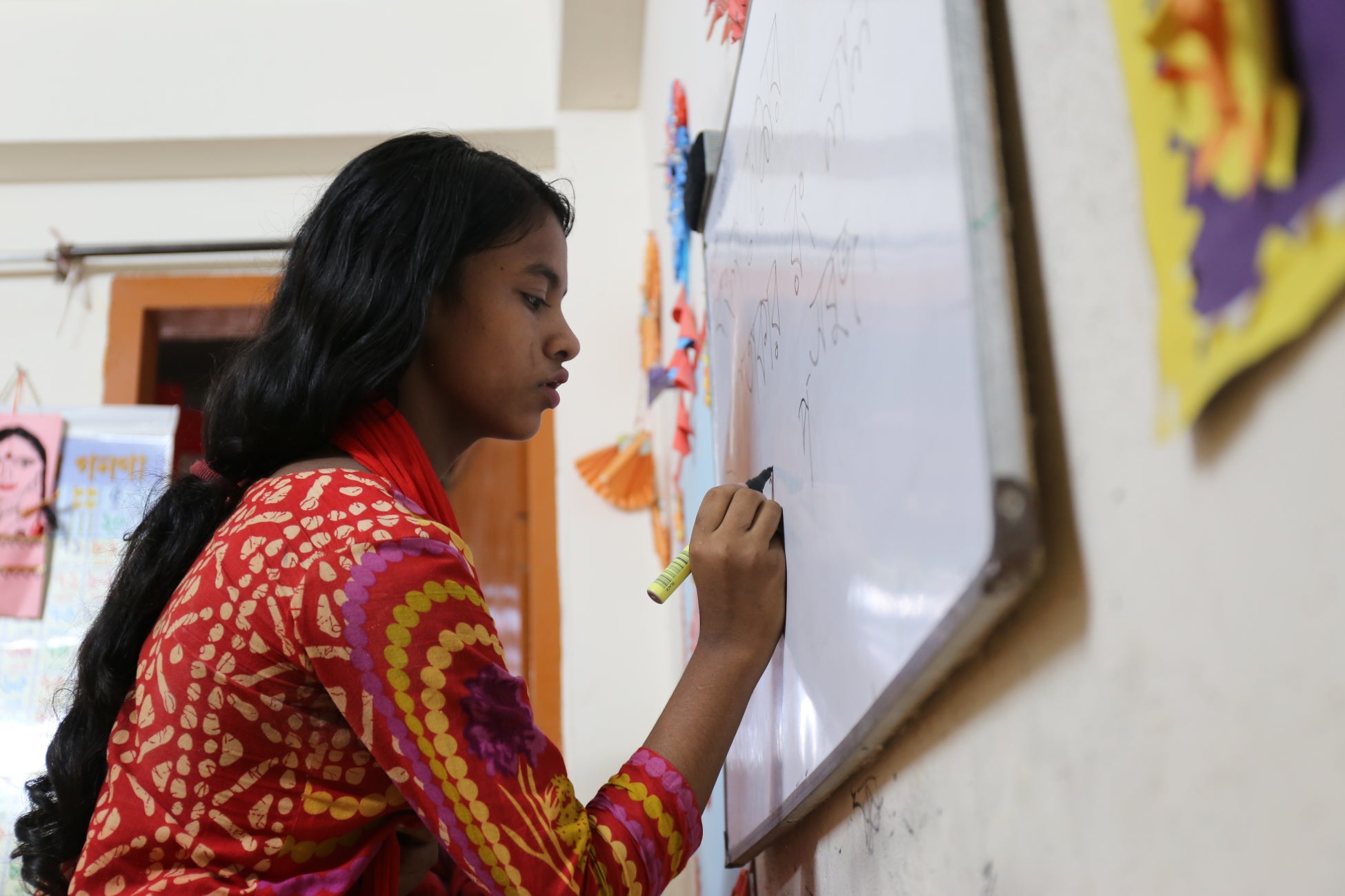 シャプラニールでは2006年からこの課題に取り組み、現在は首都ダッカで現地NGOと協働して、2つの支援センターで基本的な読み書きや計算、保健・衛生教育のほか、将来の職業の選択肢を増やすための縫製や美容・理容などの技術研修等を提供しています。2024年度までの19年間で、のべ約1480人が支援センターで学び、230人が学校へ編入し、中には成績優秀で授業料免除となり高等教育へ進む少女もいました。