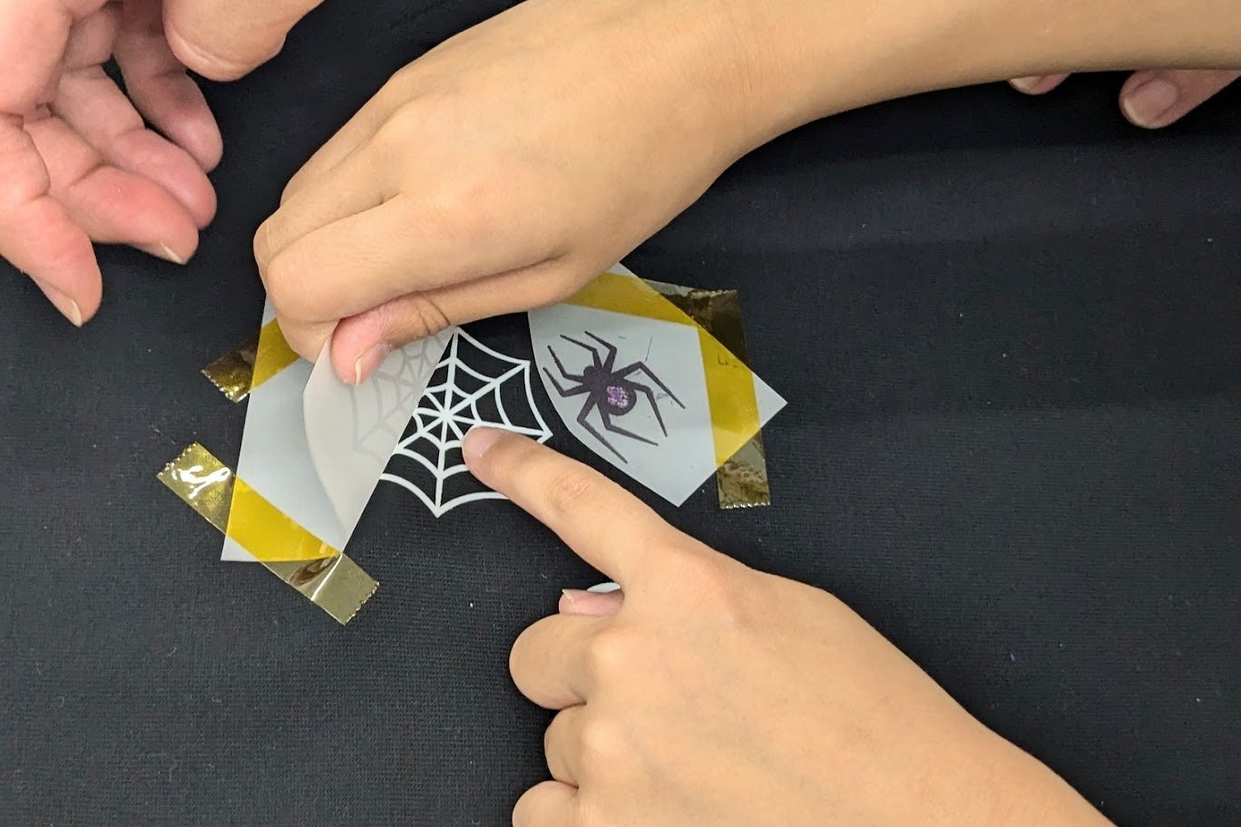 本イベントは、秋をモチーフにしたデザインシートを使って、Tシャツやポーチなどのアイテムをデコレーションするワークショップです。ハロウィンや森の植物など、さまざまなデザインを多数ご用意しており、お好きなものを選んで自由に組み合わせ、その場でアイテムにプリントし、自分のこだわりと秋の雰囲気がぎゅっと詰まったオリジナルグッズをお作りいただけます。