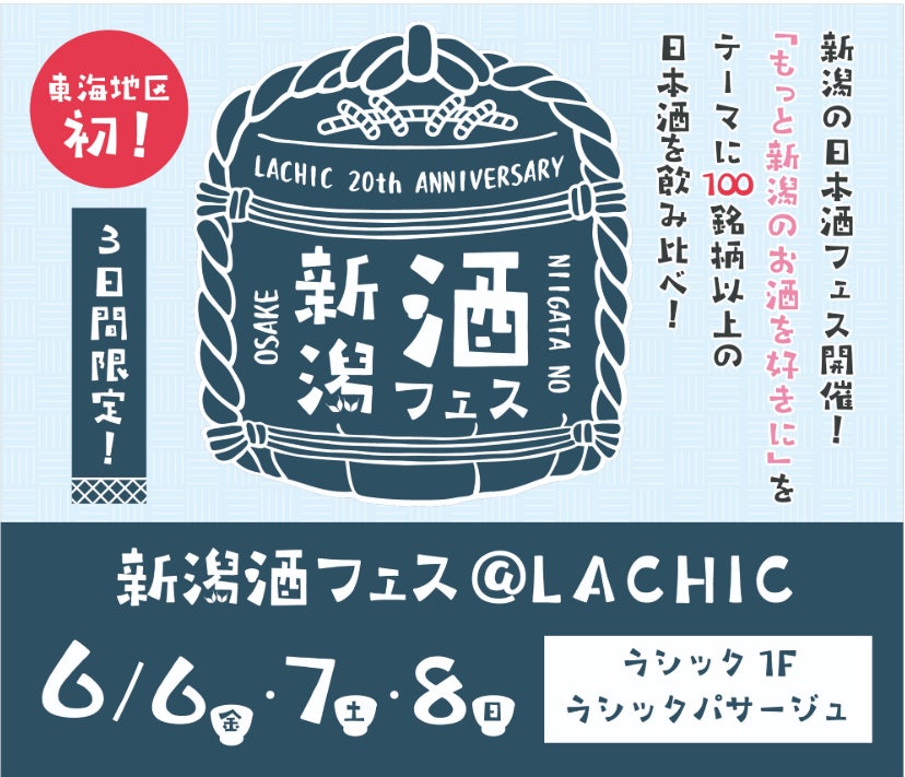津南醸造株式会社(本社:新潟県中魚沼郡津南町、代表取締役:鈴木健吾)は、2025年6月6日(金)から6月8日(日)まで、名古屋市栄の商業施設「LACHIC(ラシック)」1階・ラシックパサージュにて開催される「新潟酒フェス@LACHIC」に出展いたします。