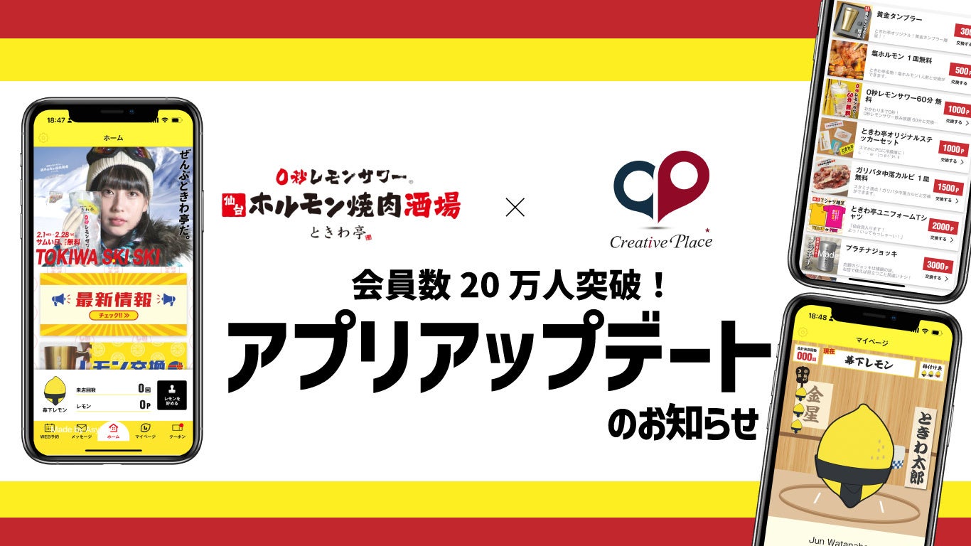 GOSSO株式会社は、当社が提供する「0秒レモンサワー® 仙台ホルモン焼肉酒場 ときわ亭」公式アプリ(リピつくサービス)をリニューアルし、4月5日(水)より運用を開始いたします。