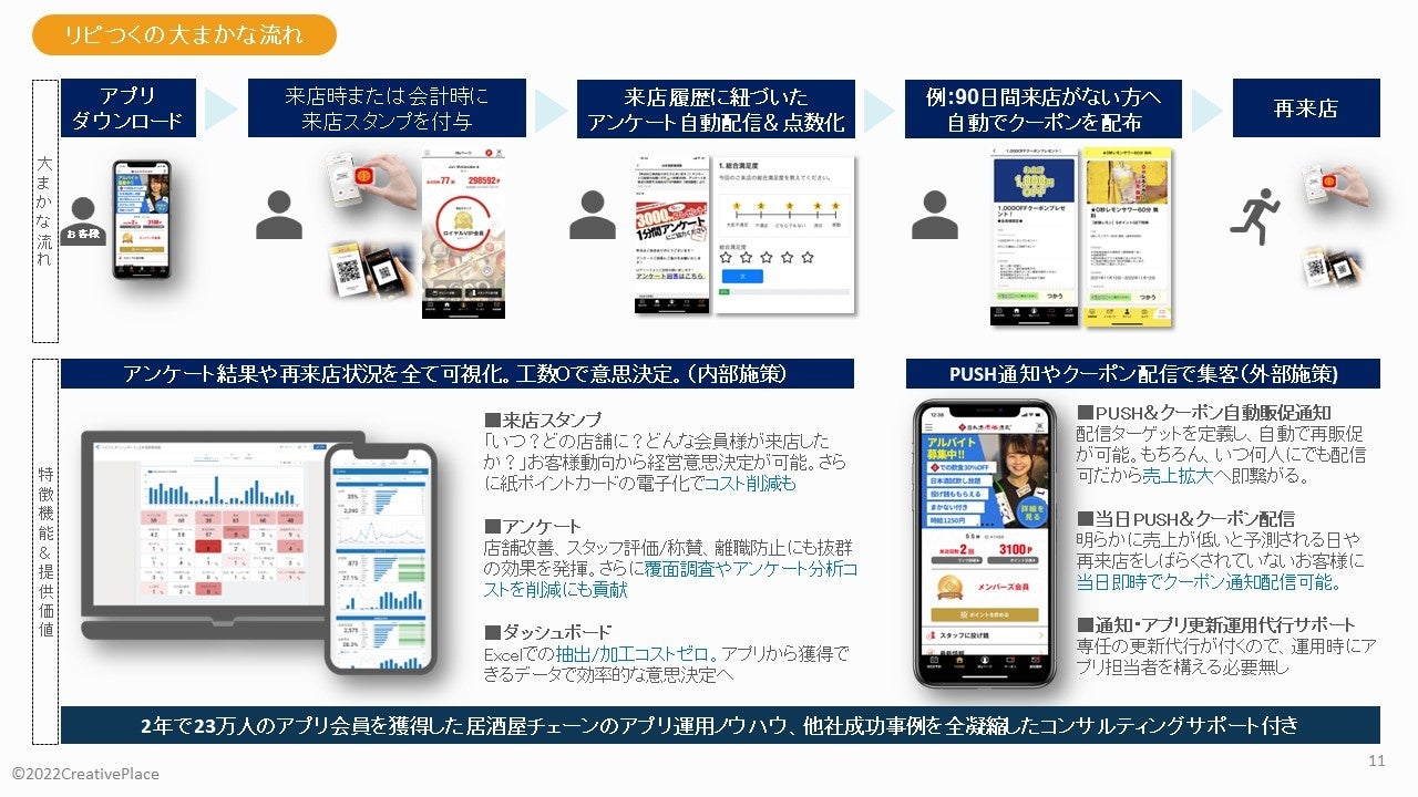 本質的な飲食店リピート集客をアプリで実現・提供する株式会社クリエイティブプレイスの「リピつく」サービスより