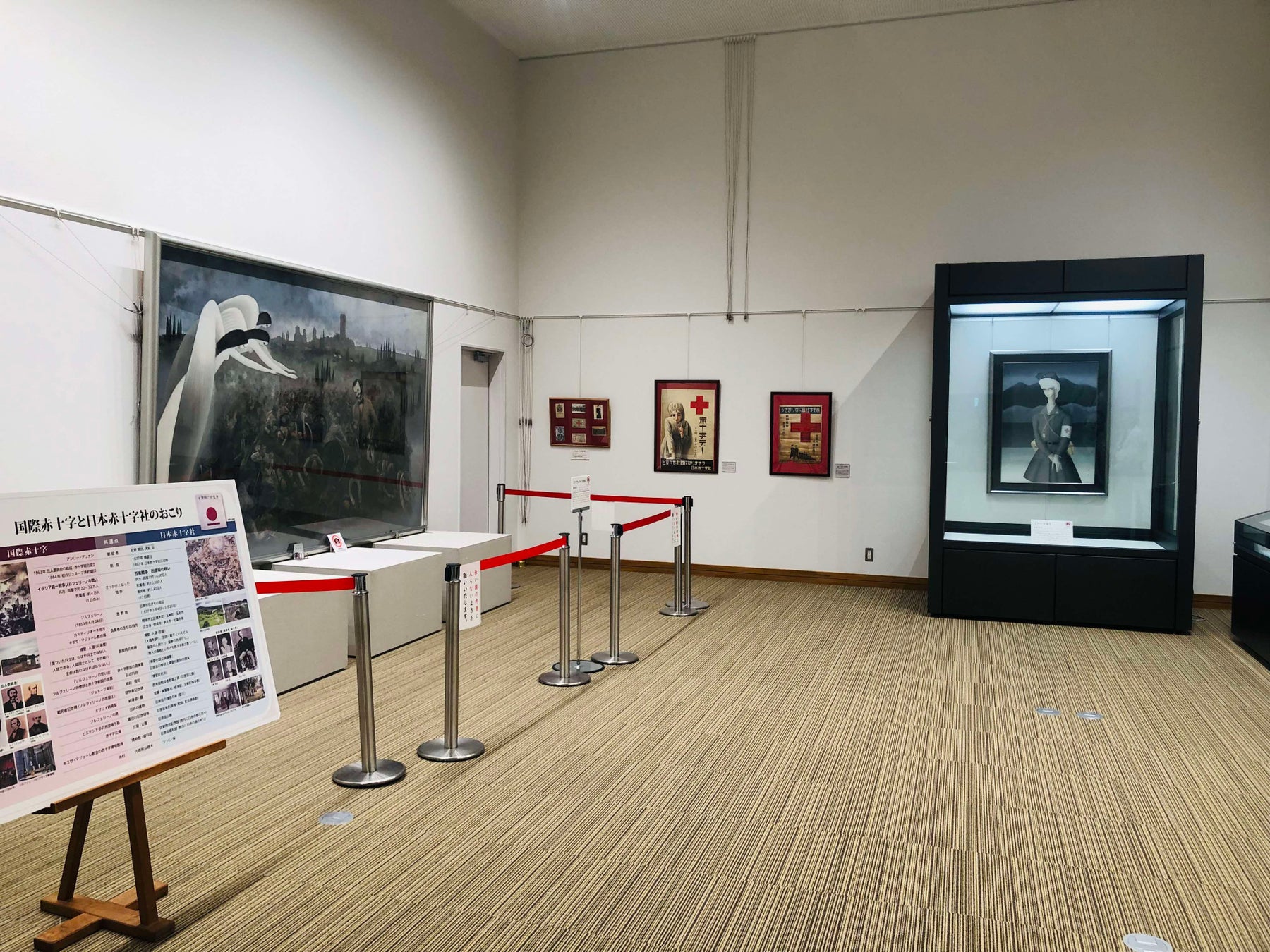 【書】 日本赤十字社に関わりの深い有栖川宮熾仁親王 (ありすがわのみやたるひとしんのう) 、大給 恒(おぎゅう ゆずる) 、渋沢栄一といった人物の書を紹介。