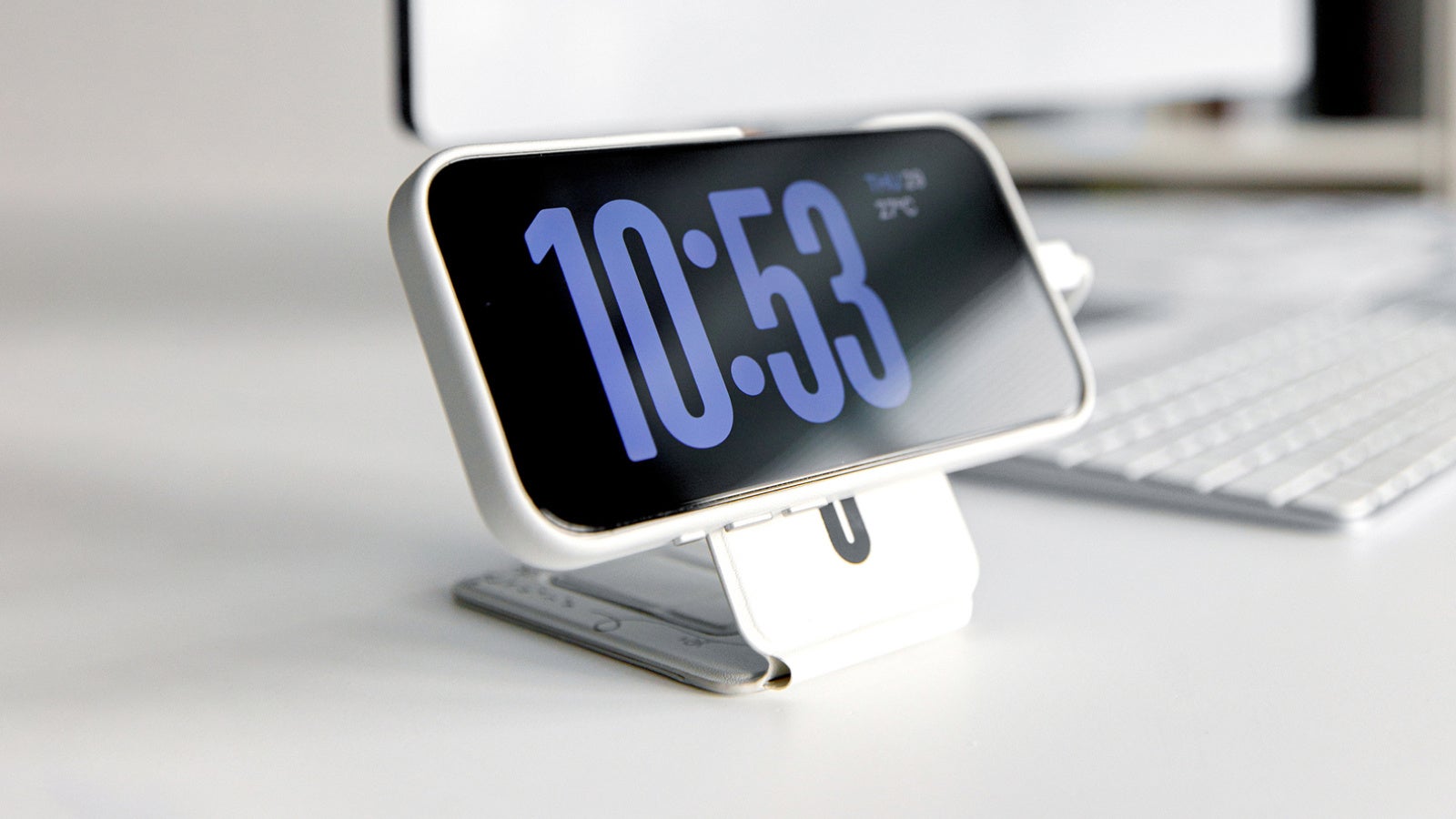 スマホスタンドとして活用できる安定性の高いモード。デスクやベッドサイドに設置すれば、動画視聴やオンライン会議時はもちろん、タイマー機能や時計表示用としても活用できます。手を使わずに画面を確認できるため、作業時間を快適にサポートします。