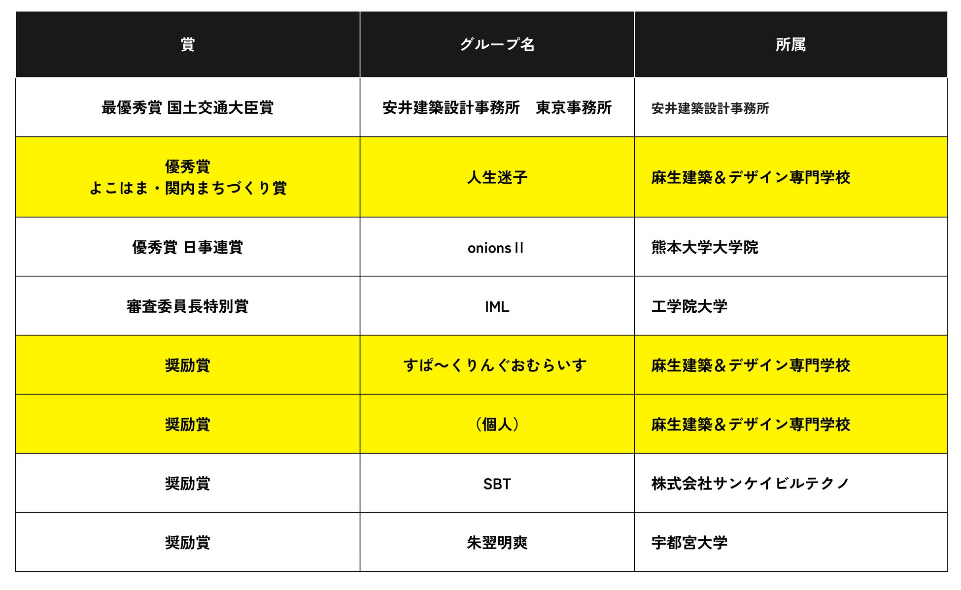 受賞作品8賞のうち、3件を麻生建築&デザイン専門学校の学生が受賞しました。