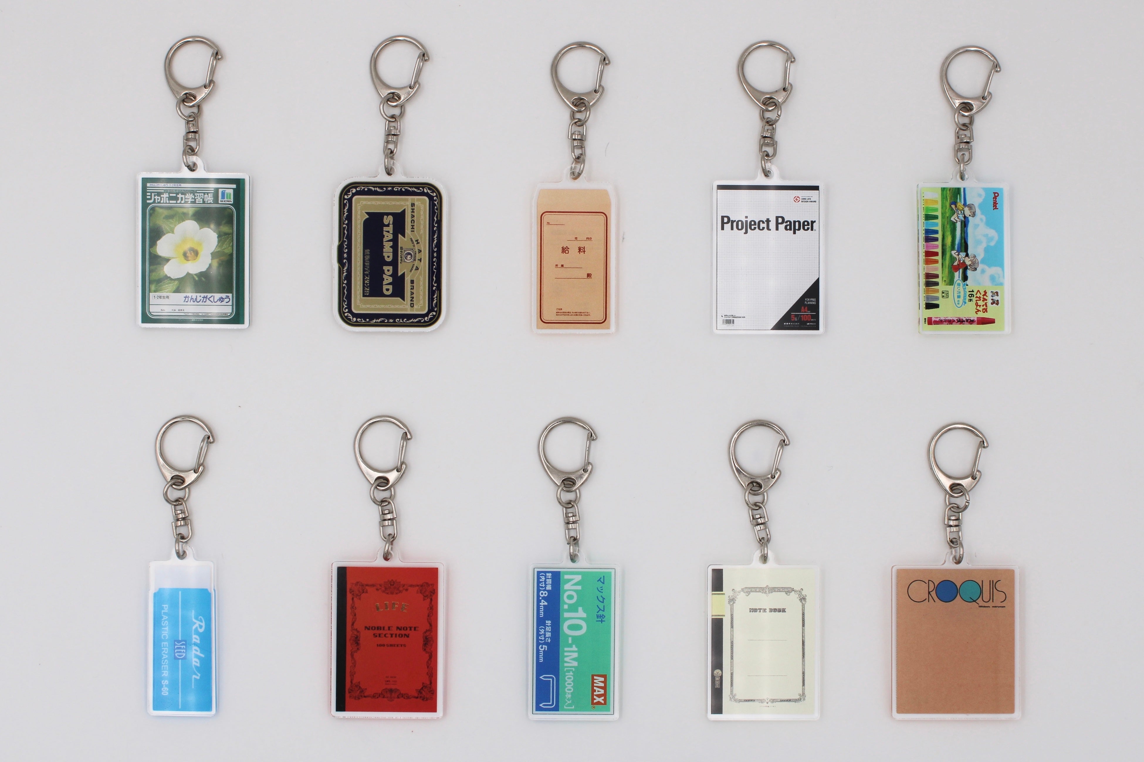 「文具女子博2020」で初登場し、大好評だった「アクリルキーホルダーコレクション」の第2弾。おなじみの文具がミニチュアのキーホルダーになりました!シークレット柄も含め11種類。会場では第1弾(全10種類)も購入できるので、全部で21種類♪何が当たるかはお楽しみ。