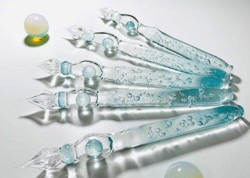 人気の定番デザインから、独創的なデザインまで数多く取り揃えております。店頭のガラスペンは全て試筆可能。一本ずつ手作業でペン先を研磨しておりますので書き味はそれぞれ少しずつ違います。是非自分にぴったりのガラスペンを見つけてください。