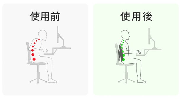 デスクワークや⻑い時間椅⼦に座り、同じ姿勢を続けて作業を⾏なう⼈にとって腰、⾸や肩への悩みは付き物です。筋⾁が緊張した状態が続くので、腰、⾸や肩への負担を⽣じることがあります。