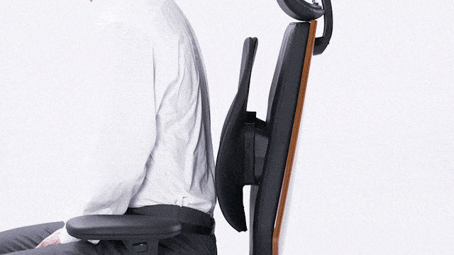 ⼈間⼯学に対応したProHeaに座ると、⼆つのランバーサポートは両⼿のように適当な圧⼒で脊椎をサポートし、負担を分散することができます。