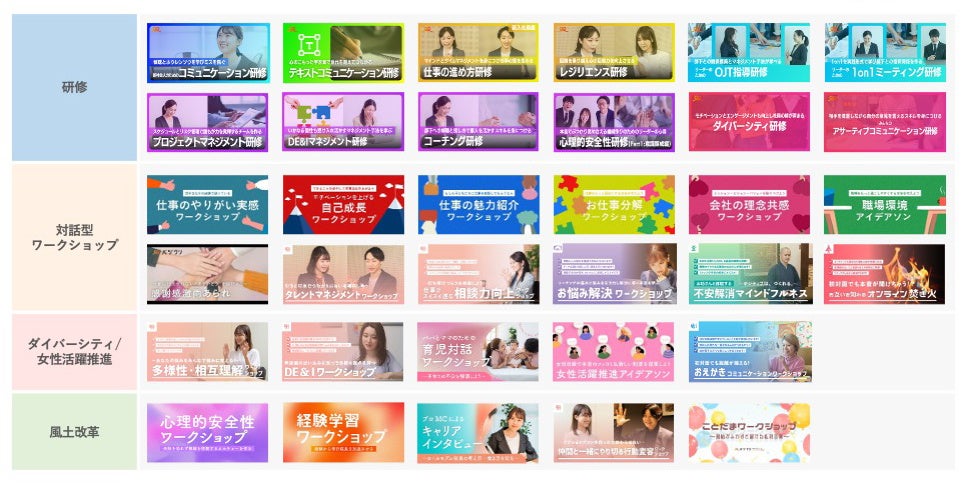 サーベイの結果から見えた課題ごとに、目標設定、計画策定、各部門長への依頼、自分ごと化できる研修/ワークショップの企画/運営、レポート作成、課題提案を一括支援。研修/ワークショップ実施後、各スコアが30%以上改善。
