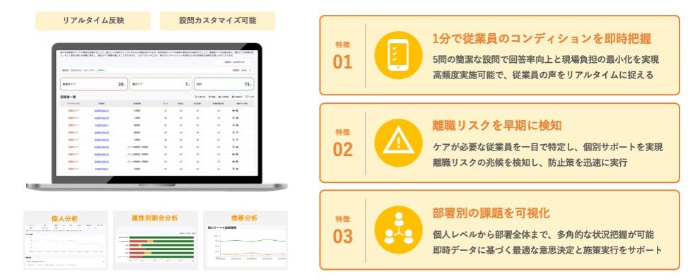 この新機能により、従業員の状態をリアルタイムで把握し、離職リスクの早期発見と適切な介入が可能になります。