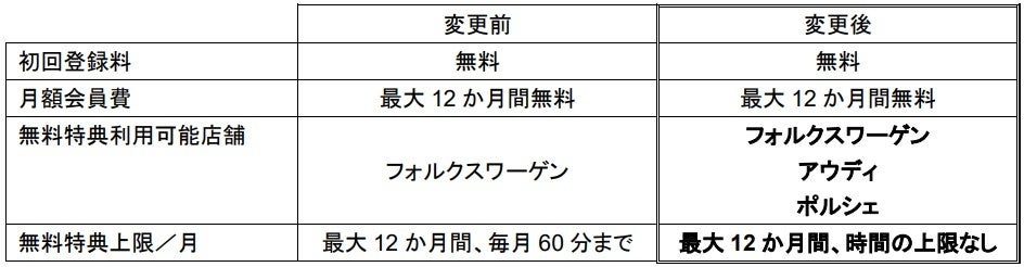 この変更に伴い、従来最大12か月間月額会員費(毎月90分までの充電器利用料金含む)を無償としていた、株式会社e-Mobility Powerが提供する日本全国の充電ネットワークで利用できる「Volkswagen充電カード」について、その月額会員費特典を本年10月31日までの車両登録ならびに充電カード申し込みをもって終了といたします。
