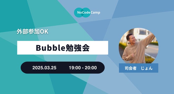 東京都稲城市を拠点に活動するNoCodeCamp(代表:宮崎)は、人気急上昇中のノーコードプラットフォーム「Bubble」を使ったオンライン勉強会を3月25日にオンラインで開催します