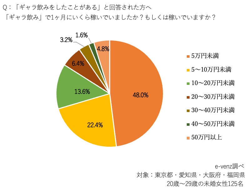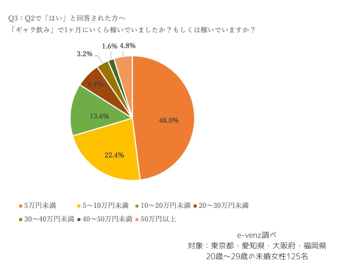 そこでe-venzでは、ギャラ飲みに参加したことがある20代の独身女性125名を対象にアンケート調査を実施しました。