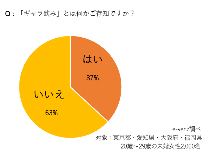 ギャラ飲みの認知度を調査すべく、今回e-venzでは東京・愛知・大阪・福岡在住の20代独身女性を対象にアンケート調査を実施しました。