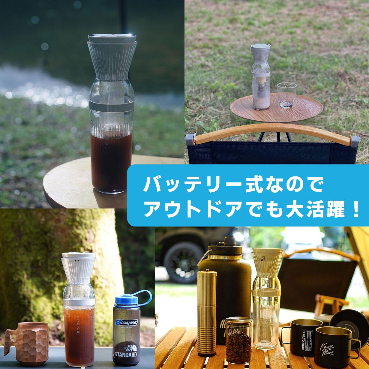 今回のモデルは、前モデルの発売以降、"一度にもっとたくさん飲みたい/作りたい"という多数のお客様のご要望から容量を前モデルの約2倍 680mlのモデルとしました。また、前モデルで高評価の真空抽出技術を継承。大容量にも関わらず僅か15分でコールドブリューコーヒーを作ることができ、アウトドア(バッテリー内蔵)、室内(静音設計)両方で、美味しく楽しめるEPEIOS コールドブリューメーカーを応援購入サービス「Makuake」にて先行予約販売開始致します。