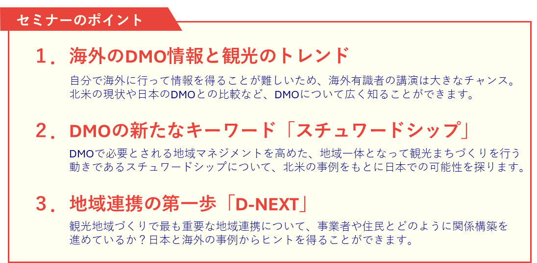 海外の最新事情から学ぶ!「DMO観光地域づくりセミナー」を開催