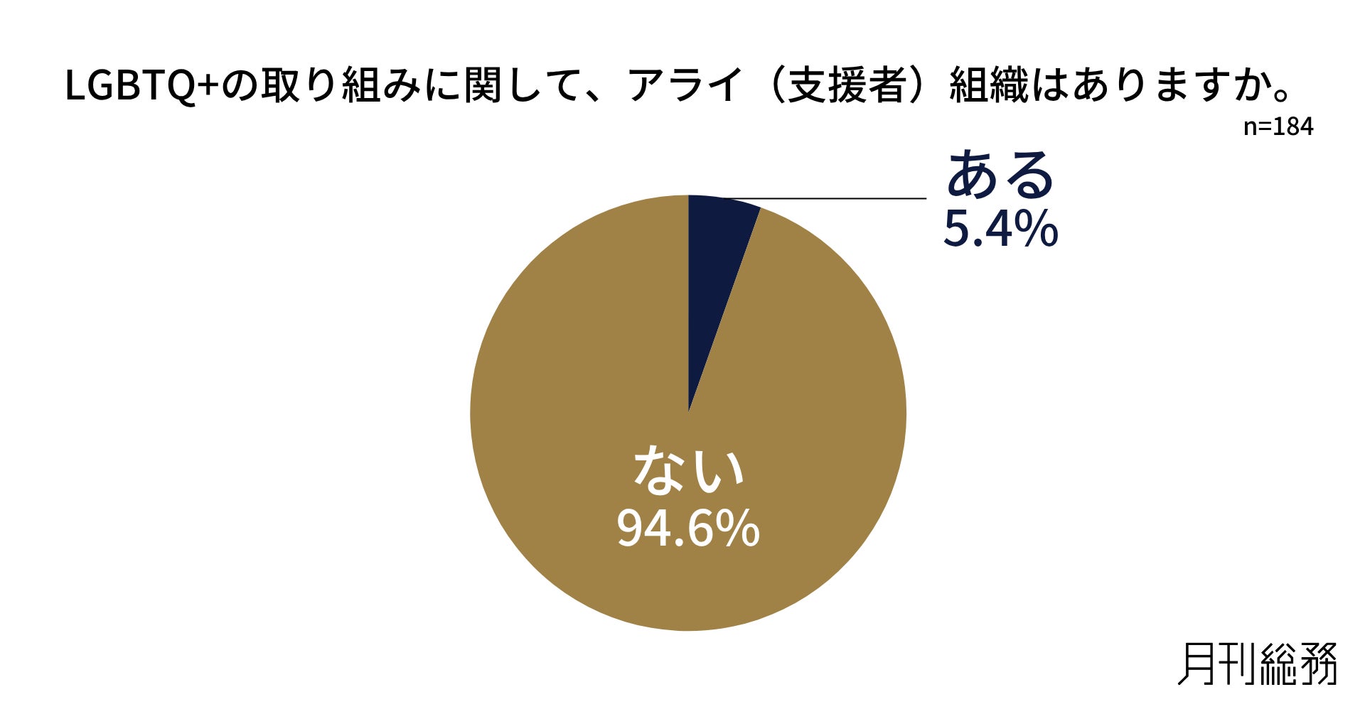 アライ(支援者)組織の有無について尋ねたところ、「ある」が5.4%にとどまりました(n=184)。